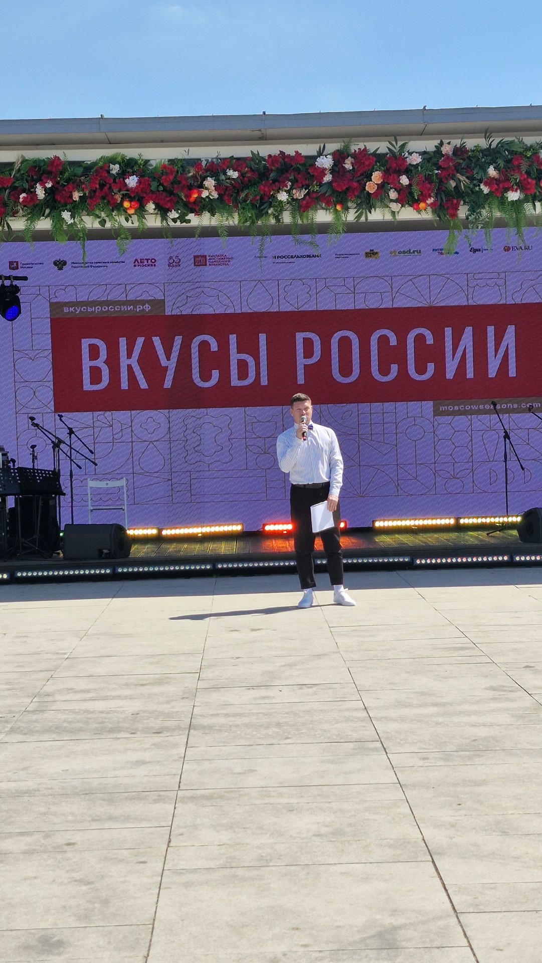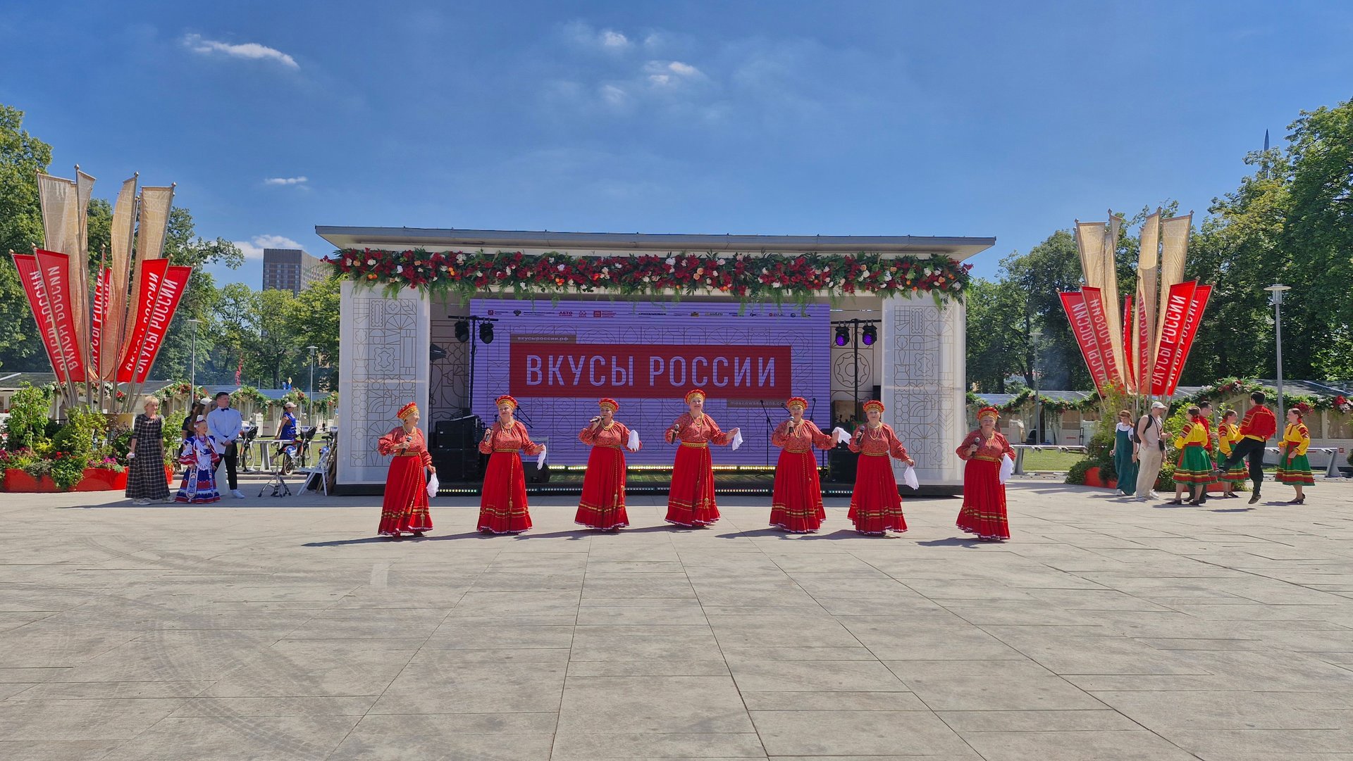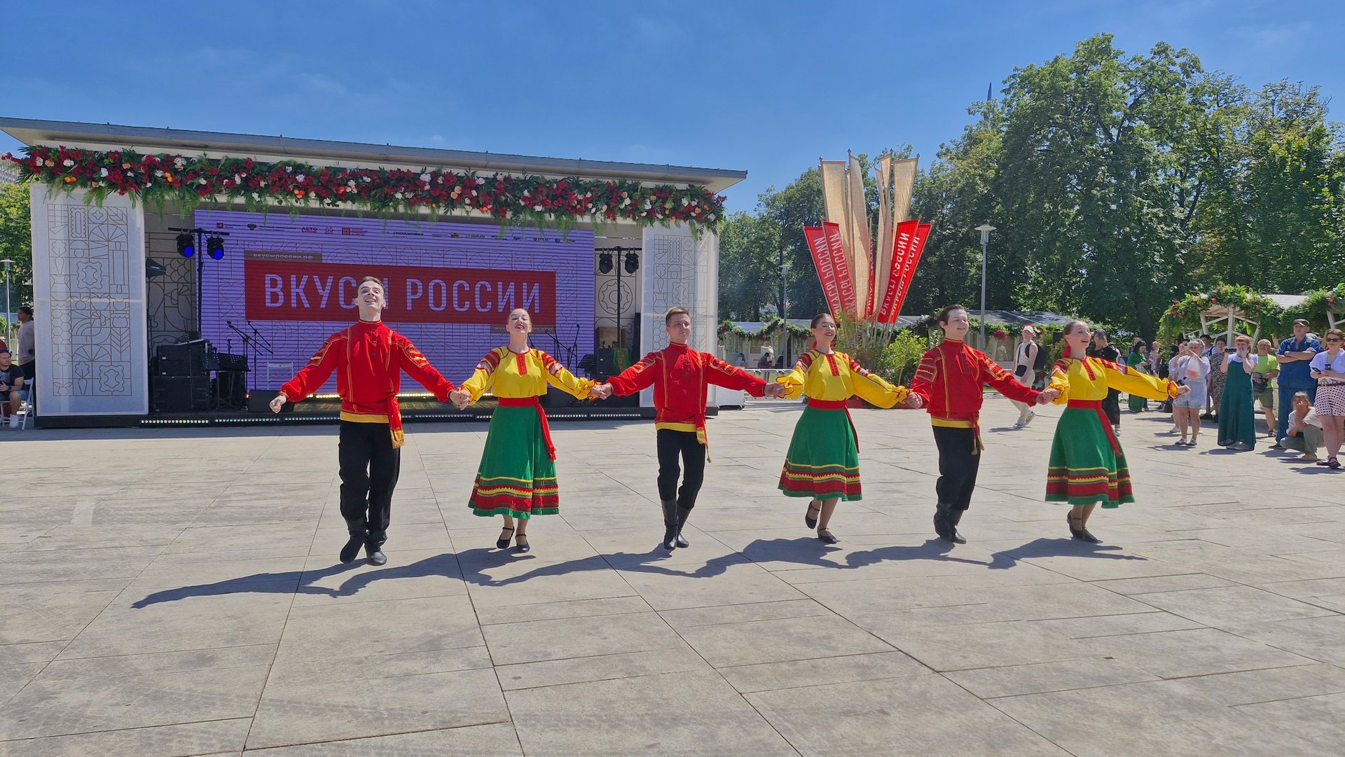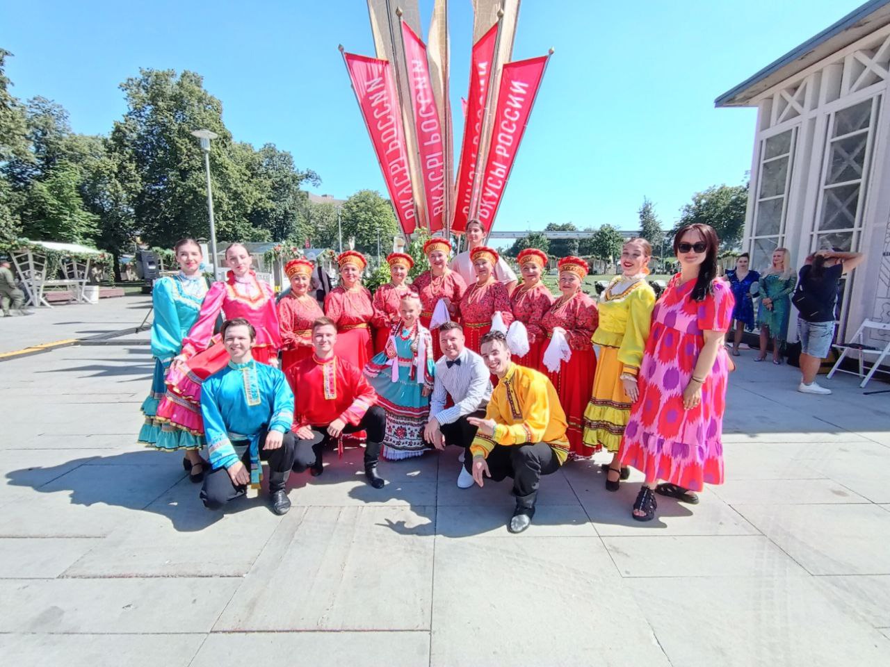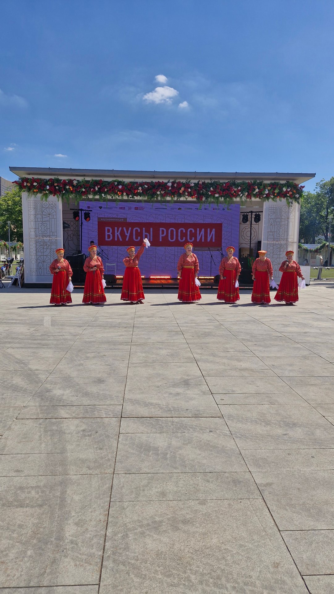 Призеры всероссийских и международных конкурсов художественного творчества, среди которых народный коллектив ансамбль народного танца «Иван да Марья», исполнительница народных песен Полина Недобежкина из г. Иваново, юная вокалистка-народница, обладательница диплома гран-При межрегионального фестиваля самодеятельного творчества «Губернский разгуляй», участница шоу Андрея Малахова Олеся Озерова из г. Шуя и обладатель Гран-При в номинации народная песня межрегионального фестиваля самодеятельного творчества «Губернский разгуляй» народный ансамбль «Русские узоры» из г. Фурманова выступили на главной сцене фестиваля со своей яркой и колоритной творческой программой. Напомним, что с 6 по 14 июля в Москве проходит гастрономический фестиваль «Вкусы России». В столичной ярмарке региональных брендов принимают участие фермерское хозяйство «Шуйские ягоды», хлебозавод «Рижский хлеб» и сыроварня «Ремесленный дом Павла Кабанова». В этом году праздник вкуса реализуется в рамках проекта «Лето в Москве» и представляет продукцию свыше 300 производителей из более чем 70 регионов. Региональных артистов и участников ярмарки представил художественный руководитель АГУИО «ОКМЦКТ», режиссер и актер театра юного зрителя Сергей Кочкин. На протяжении полутора часов зрители тепло и радушно принимали самодеятельных артистов пританцовывая и подпевая полюбившиеся песни.