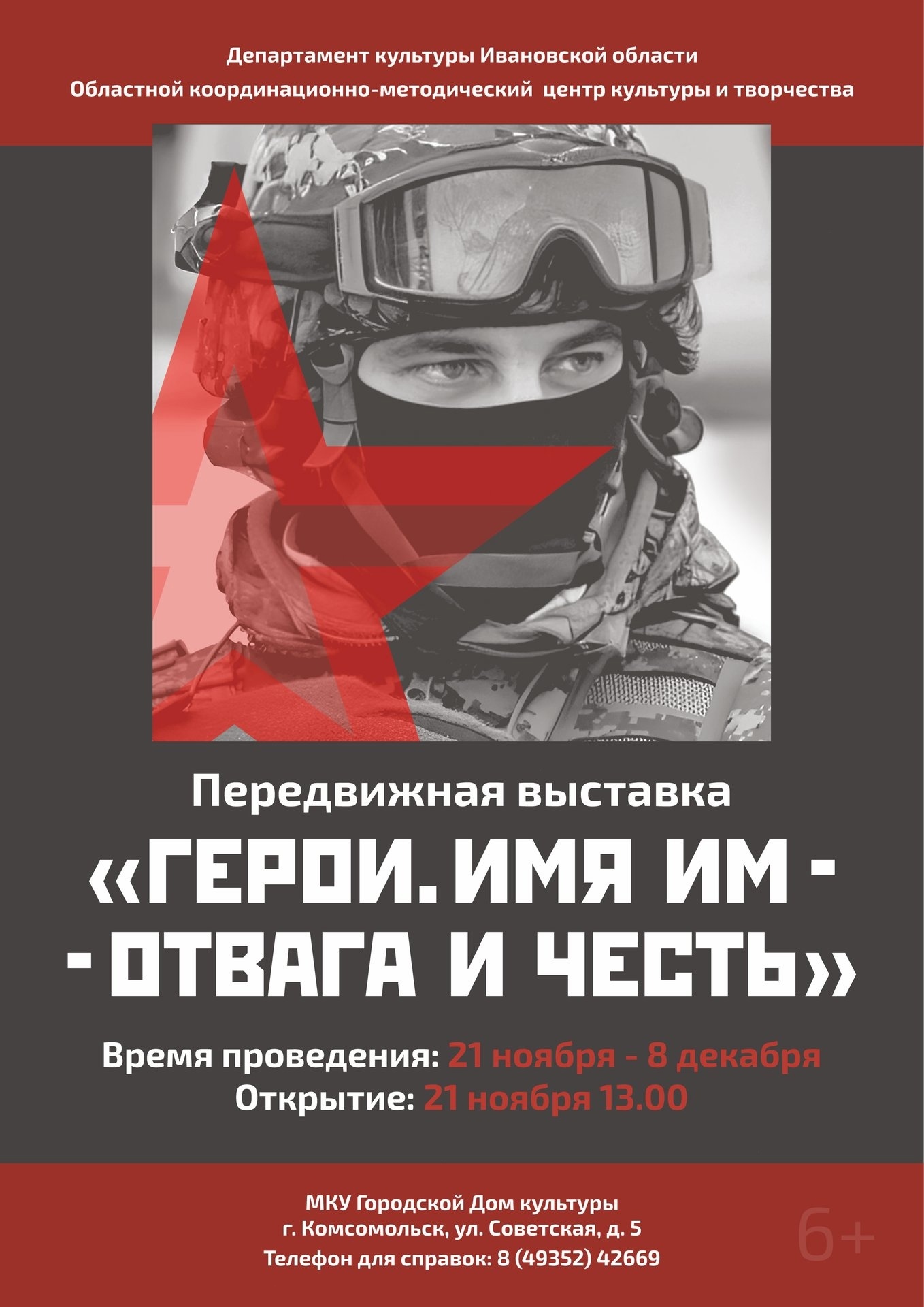 21 ноября в 13.00 в МКУ «Городской Дом культуры» г. Комсомольск состоится открытие областной передвижной выставки «Герои. Имя им – отвага и честь».