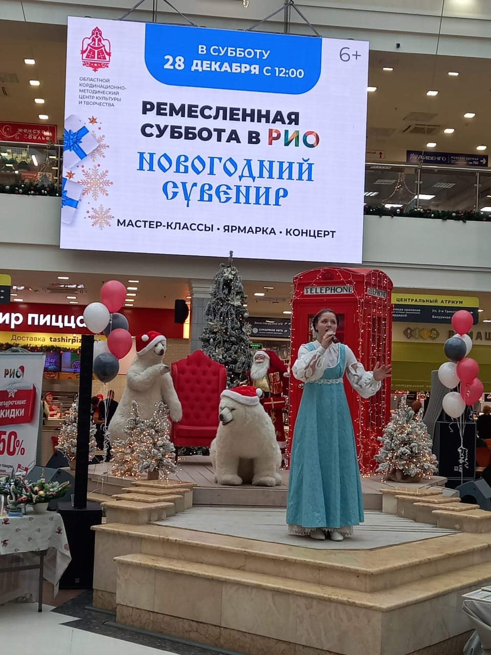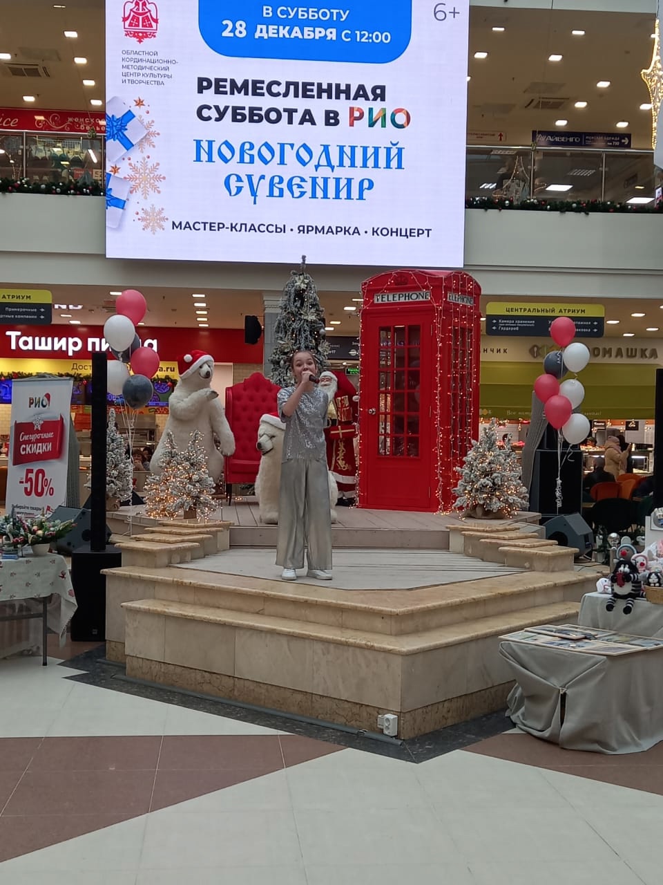 На сцене текстильного центра состоялся концерт, в котором приняли участие солистки вокально-эстрадной студии «А+Б» Центра культуры и отдыха г. Иваново Аделина Башкурова и Таисия Соловьева и ученица Детской музыкальной школы №4 г. Иваново Анисья Новикова.