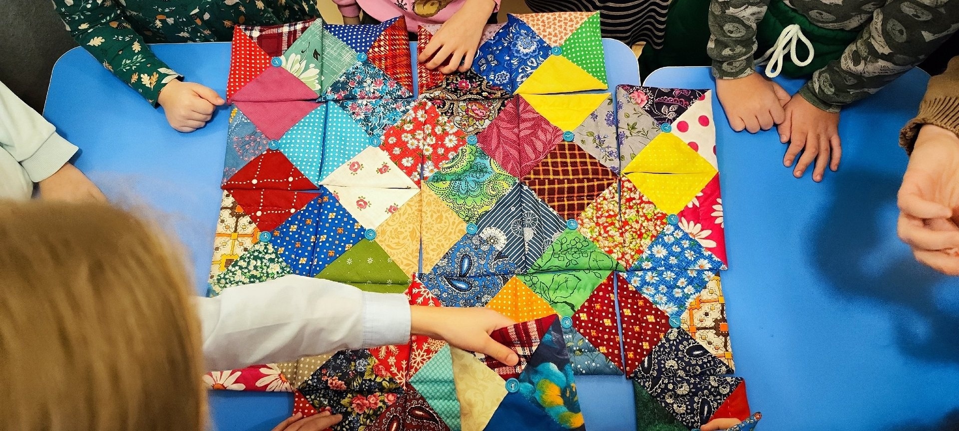 В ходе мероприятия все присутствующие смогли пообщаться с руководителем клуба-студии «Лоскутная мозаика» Мариной Тулуповой. Она в увлекательной форме рассказала о каждой работе и предложила детям собрать лоскутные паззлы.
