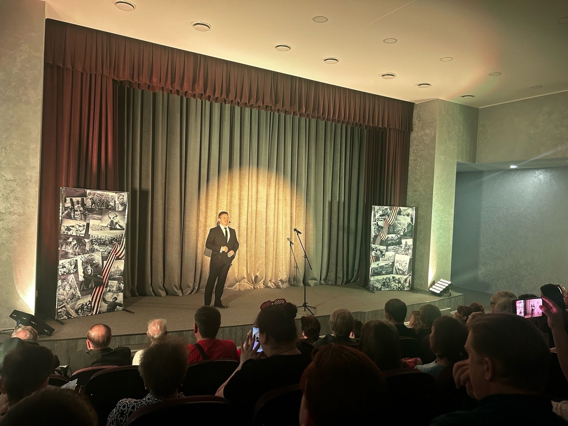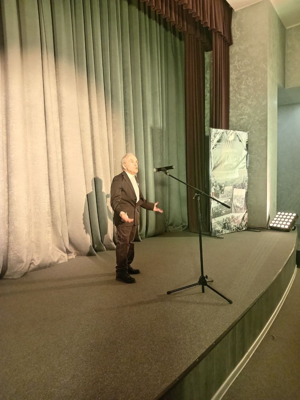 Актеры театра предстали перед зрителями в своеобразной фронтовой бригаде, а в каждой такой бригаде военного времени должен был находиться врач, в Театре Юного Зрителя эту роль исполняет почетный работник здравоохранения России, ребенок военного времени Павел Александрович Буров, который исполнил песню на стихи художественного руководителя театра, заслуженного работника культуры РФ Валерия Васильевича Маслова. Мероприятие прошло при аншлаге и было очень тепло принято публикой, среди которой были не только взрослые, но и молодежь.