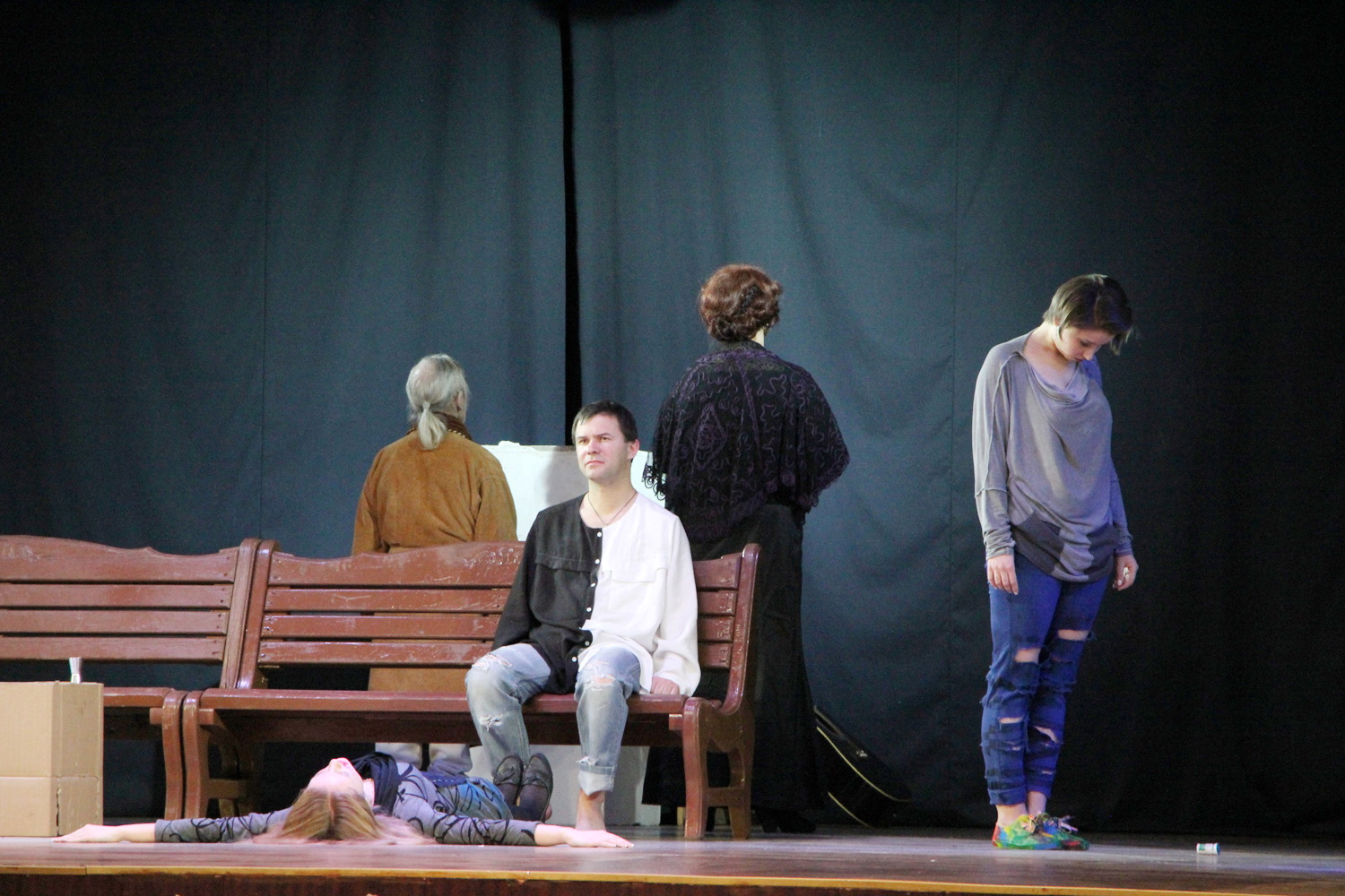Последним, что играли на сцене ОКМЦКТ в этом сезоне, был «Гамлет» в исполнении московского театра «Этюды в пространстве». Постановка, наверное, показалась чрезвычайно экспериментальной ивановскому зрителю, воспитанному на «классической классике» нашего драматического театра, театра Островского и любительских объединений региона. Да… Земля в бокалах, Doors с Леонтьевым, «To be or not to be» на обнаженной спине… После такого ивановских зритель, наверное, был готов ко всему, но… Театр непредсказуем!