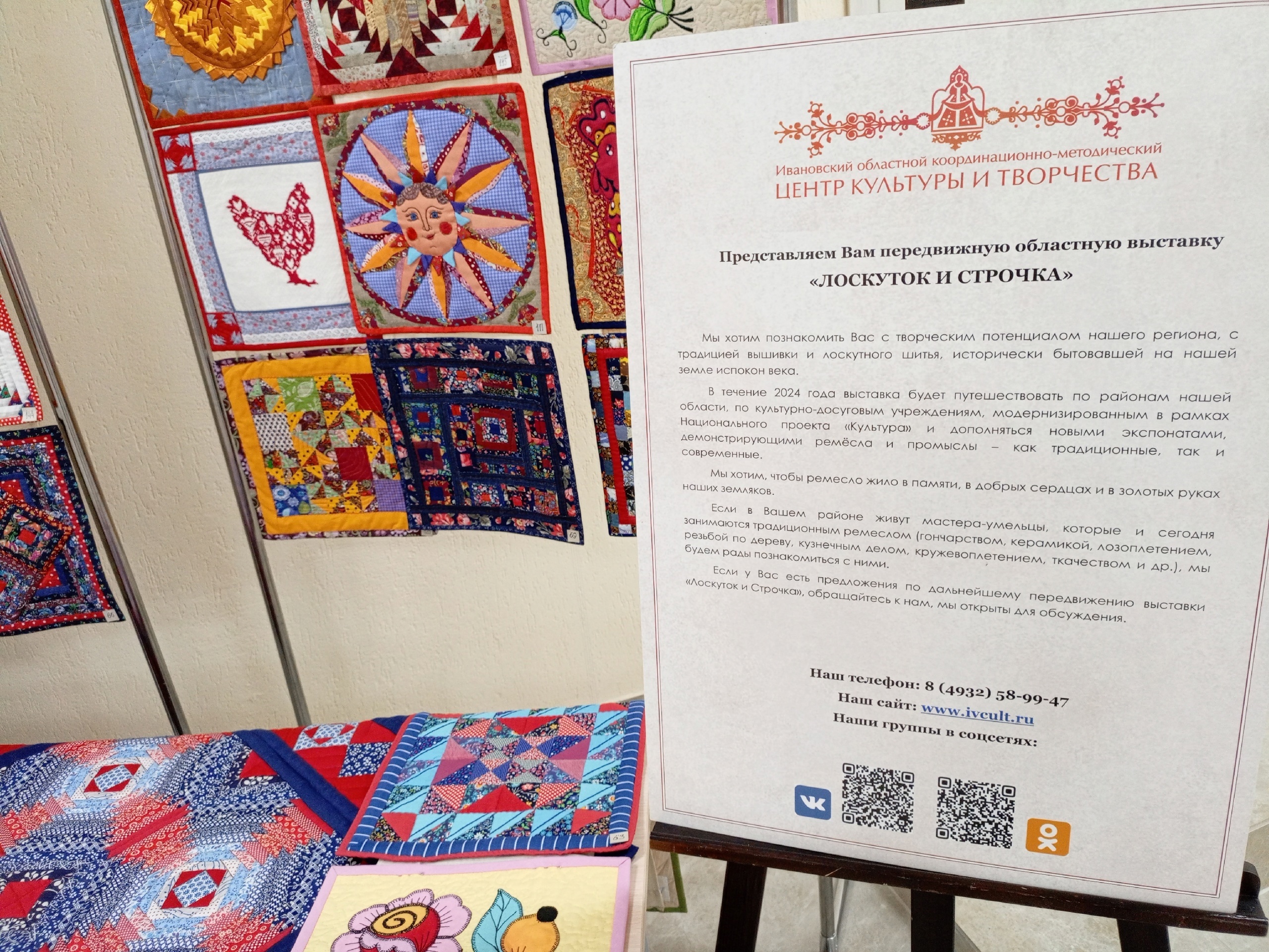 Передвижная выставка «Лоскуток и строчка», посвящённая традиционным народным ремёслам Ивановской области – вышивке и лоскутному шитью, – продолжает путешествовать по региону