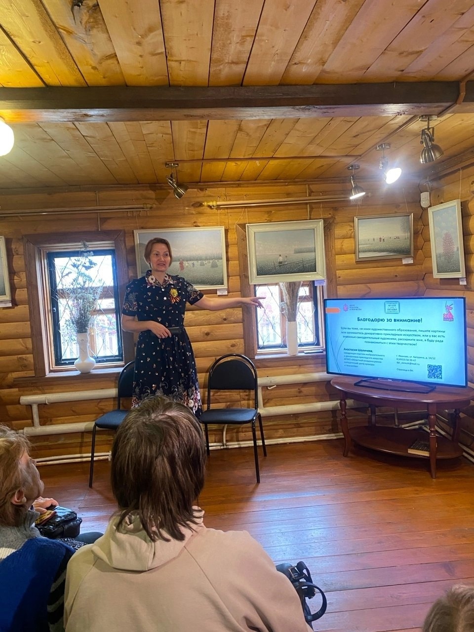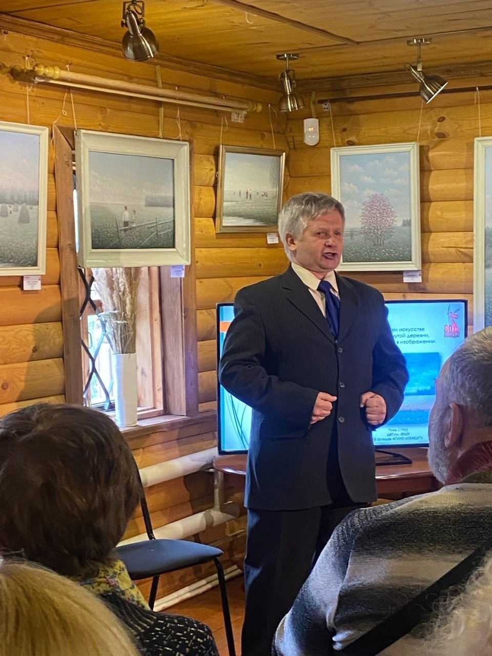 О художнике, его биографии, наградах, полученных на войне, о сюжетах картин гостям рассказала заведующая отделом ИЗО и ДПИ Областного центра культуры и творчества Анастасия Шоличева. Литературно-музыкальную часть мероприятия провели артисты Народного театра юного зрителя Елена Ясинская и Михаил Сапогов, а также ивановские музыканты Сергей Зотов и Анна Митрофанова