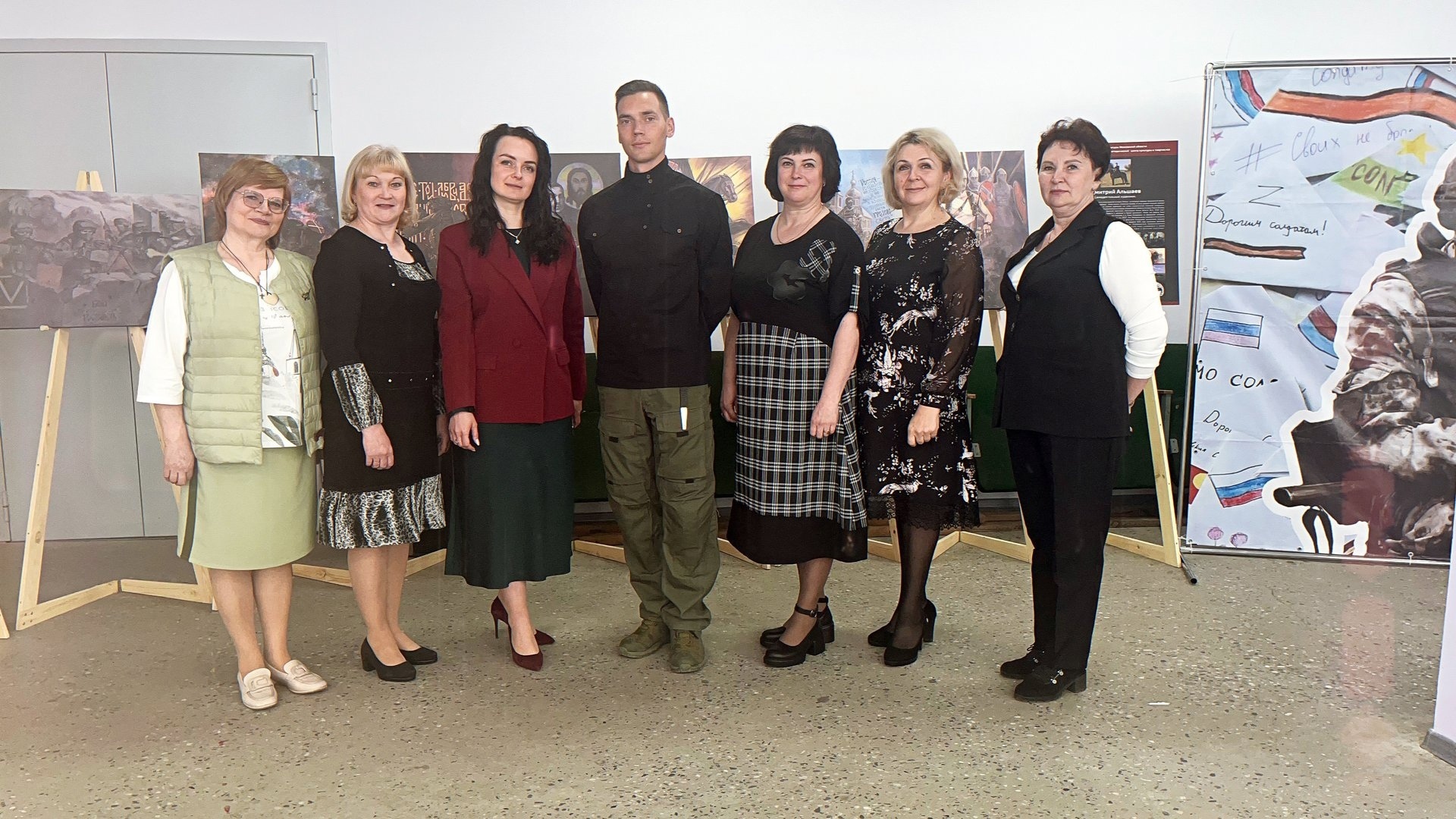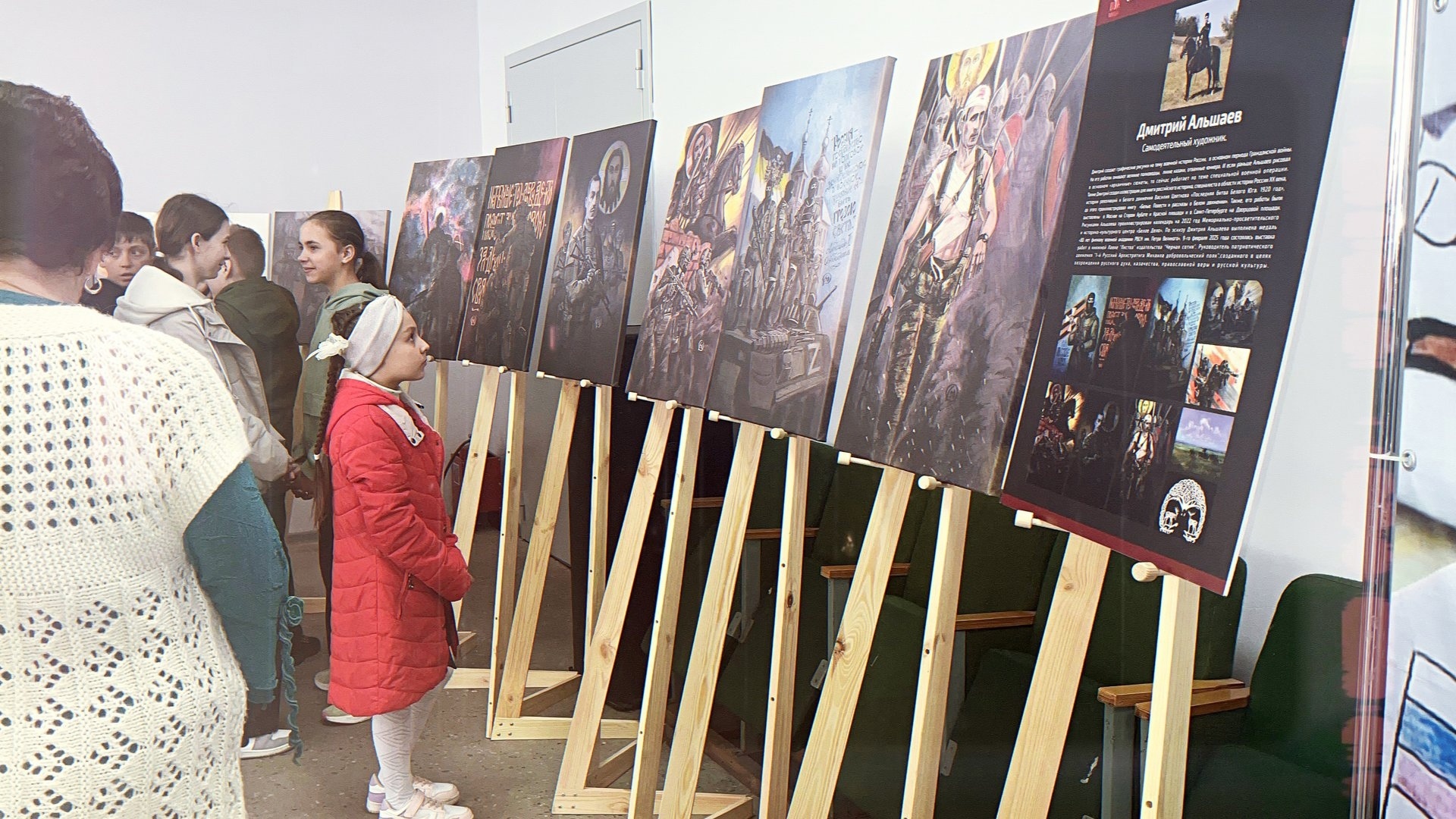 На выставке представлены репродукции рисунков самодеятельного художника Дмитрия Альшаева. Особое внимание художник уделяет событиям специальной военной операции, что делает выставку актуальной и значимой для современного зрителя.