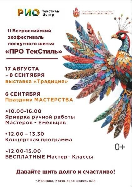 С 10:00 в ТЦ «РИО» (Кохомское шоссе, 1д) состоится праздник мастерства и творчества, а затем будем рады видеть вас в 16:00 в Музейно-выставочном центре г. Иваново (Советская улица, 29) на образовательной программе.