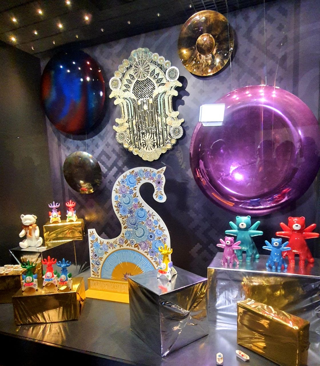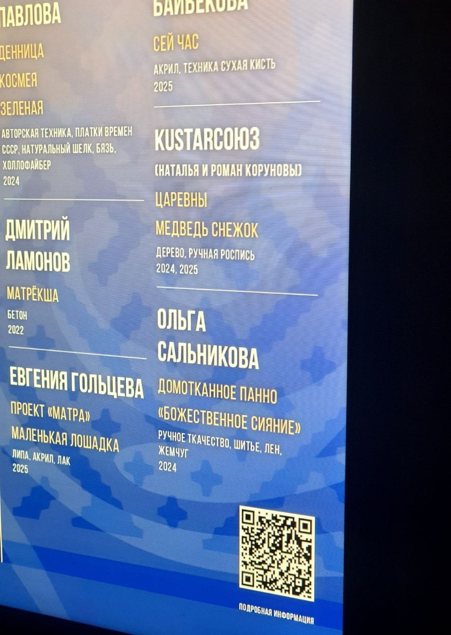17 декабря в самом центре Москвы, Подземном музее парка «Зарядье» открылась выставка «Русская игрушка: Символ. Образ. Традиция». Две ивановские художницы выставляют там свои работы. Мария Кобенья представила «Трех медведей из Шуйских ситцев», а Ольга Сальникова — домотканое панно «Божественное сияние» и фарфоровые конфетки.