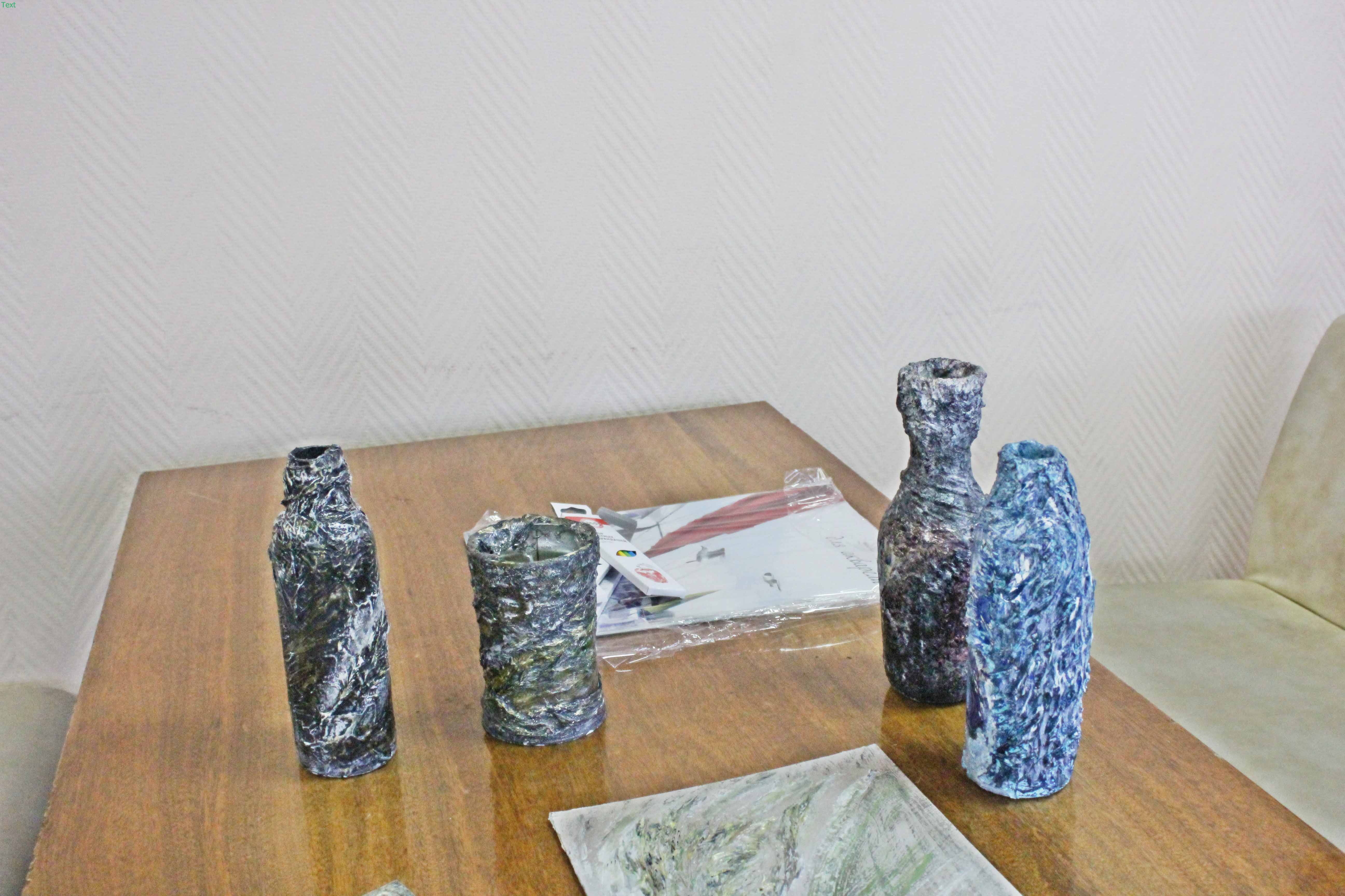 В это же самое время в фойе была организована мобильная выставка декоративно-прикладных работ, сделанные руками гостей на уроках творчества в городском молодёжном центре. Чего здесь только не было: и винтажные вазы, и креативные ключницы для прихожей и художественные миниатюры.