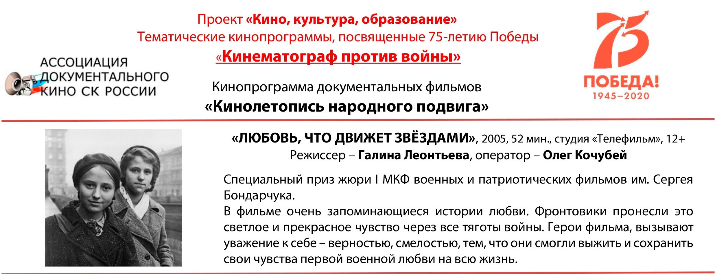 Документальный фильм "Любовь, что движет звездами". Киноакция «Дорогами Великой Победы»