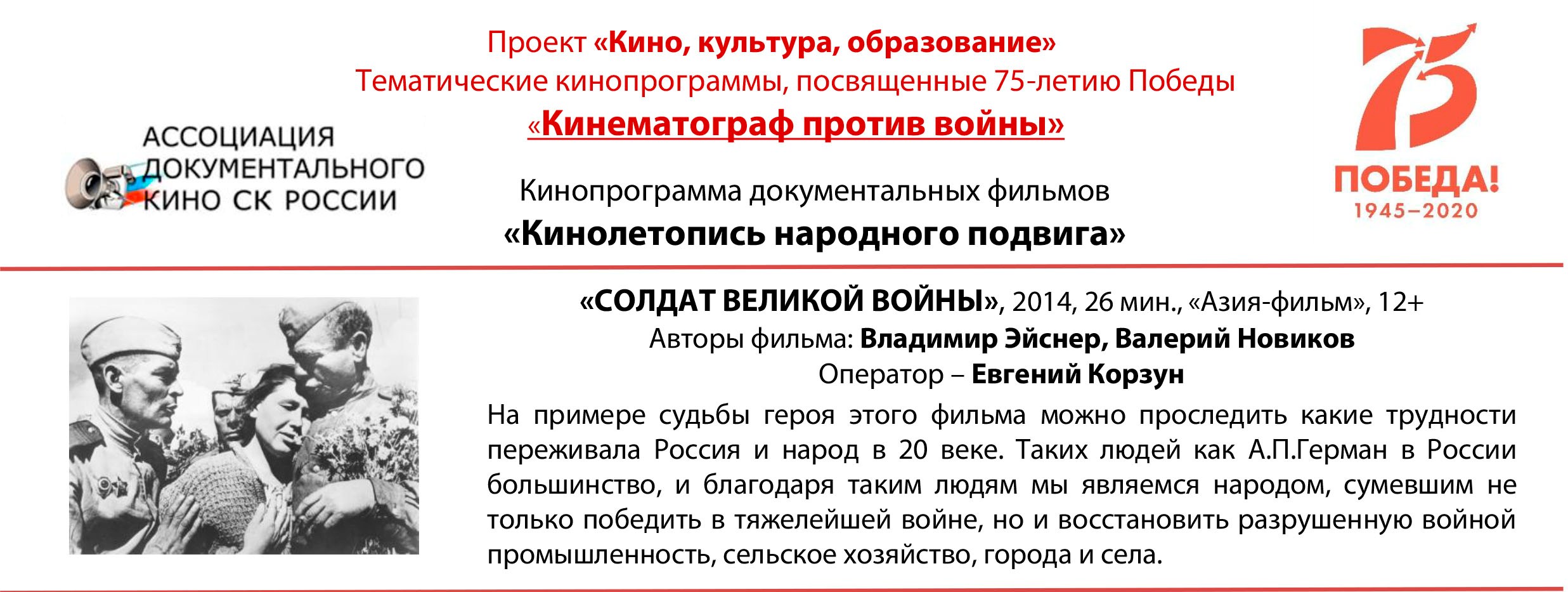 Документальный фильм "Солдат Великой войны". Киноакция «Дорогами Великой Победы»