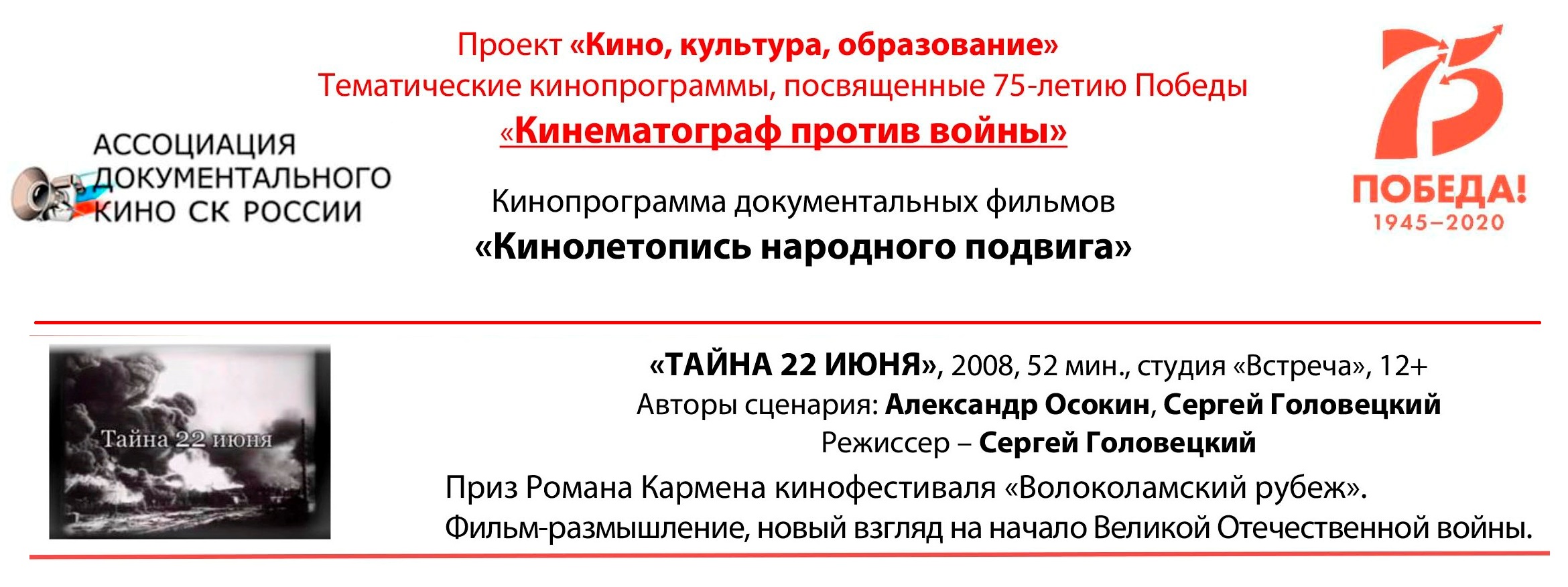 Документальный фильм «Тайна 22 июня». Киноакция «Дорогами Великой Победы»