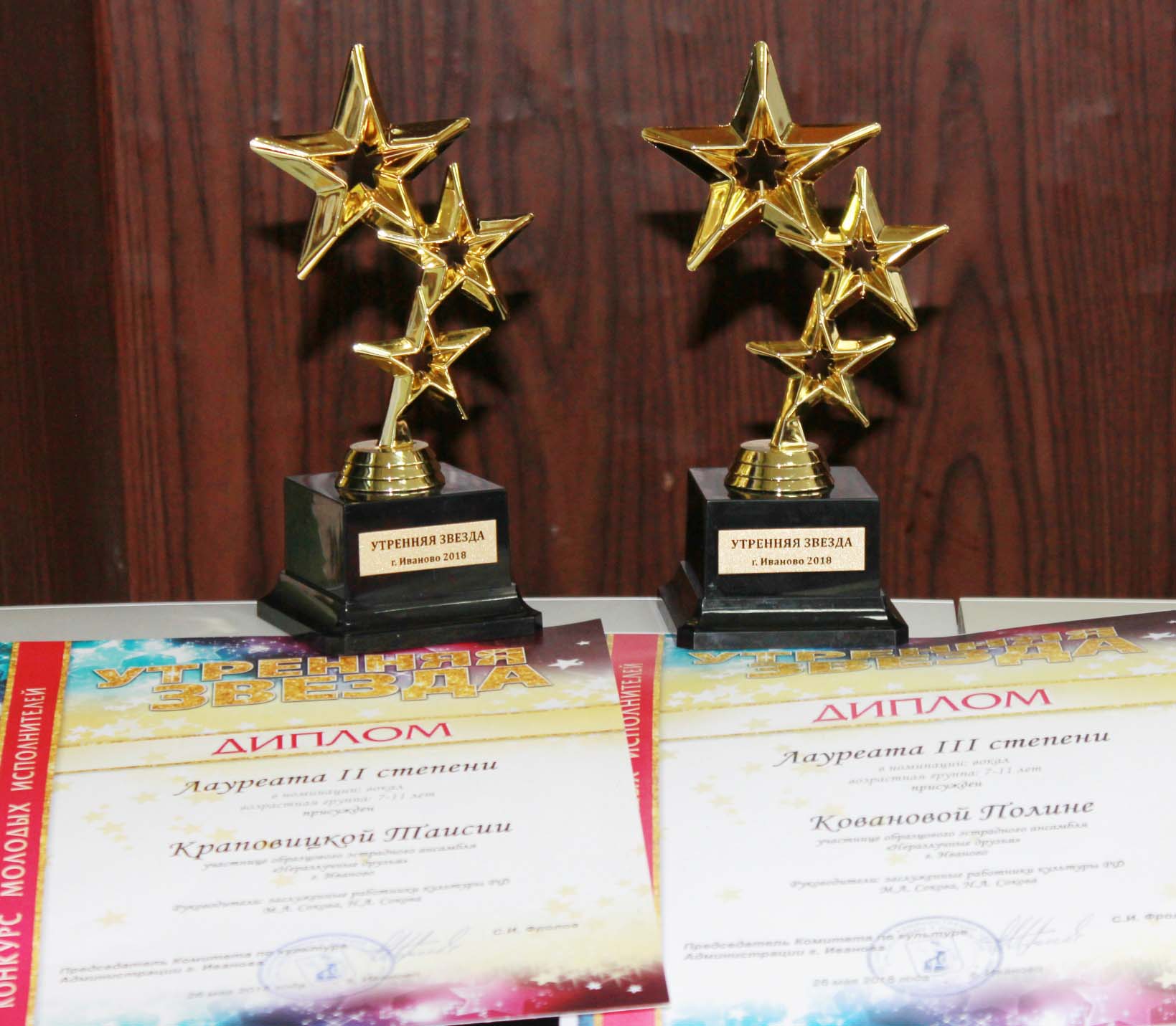 На финальном шоу самого звездного конкурса собрались талантливые танцоры, вокалисты и юные дизайнеры из Иванова и Ивановской области. Высокую оценку жюри получили и участницы образцового эстрадного ансамбля «Неразлучные друзья» (руководители заслуженные работники культуры РФ М.А. Сокова и Н.А Сокова). Самые юные вокалистки конкурса (6 лет), выступали в номинации : вокал возрастная группа: 7-11 лет. Краповицкая Таисия получила диплом лауреата II степени, Кованова Полина – лауреат III степени.