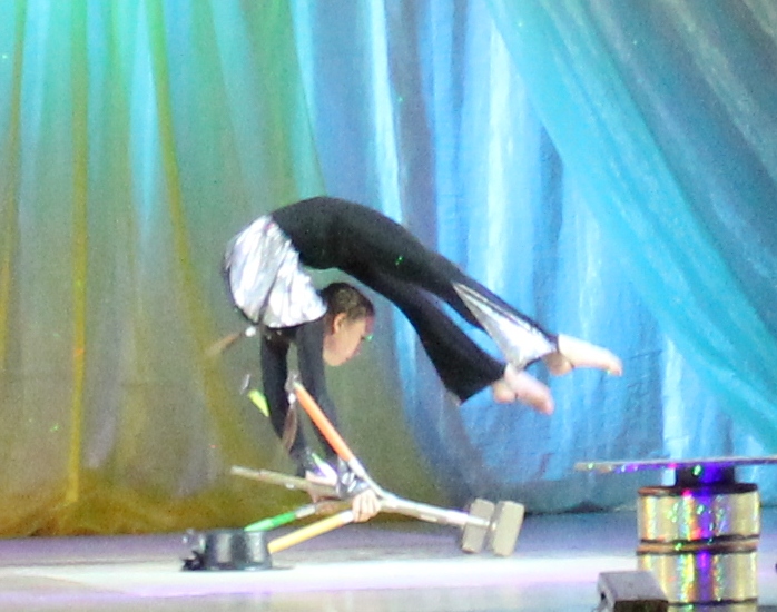 Юные циркачи продемонстрировали свои достижения, показав виртуозное мастерство и высокий артистизм. Зрители увидели праздничное волшебное представление с участием самых ярких молодых талантов - жонглеров, акробатов, гимнастов, эквилибристов. Арлекинцами было освоена и показана одна из древних игр Китая - жонглирование диаболо. Зал с большой радостью и восторгом встречал клоунов с их развлекательными композициями. Поразили всех своей пластичностью и ловкостью воздушные гимнастки в «ренском колесе», в «петлях», «бамбуке», в воздушном кольце. В постановке концертных номеров большую помощь оказал хореографический коллектив из ДЮЦа «Взгляд», руководитель Наталья Лаврова-Пеплова.
