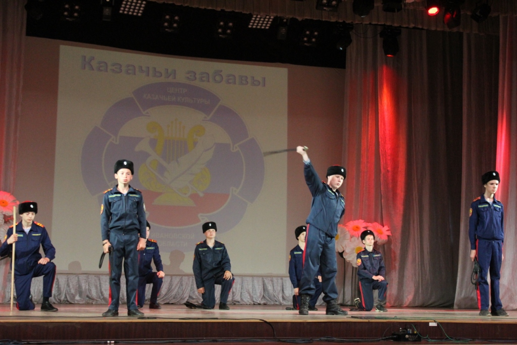 Воспитанники казачьего кадетского класса Ивановской школы №15, под руководством своего учителя Жариковой Л.В., также приготовили гостям подарок: рассказали зрителям казачьи пословицы и устроили показательное выступление с применением настоящего казачьего оружия и элементов рукопашного боя.