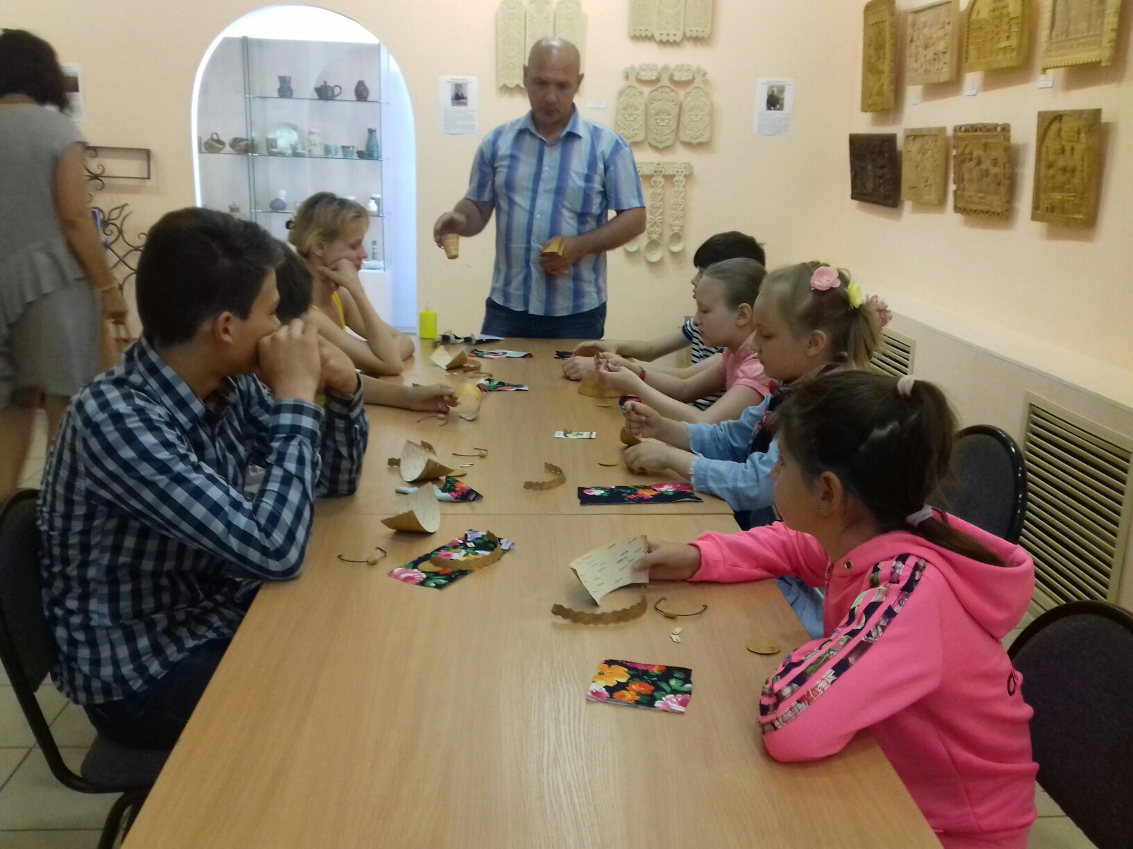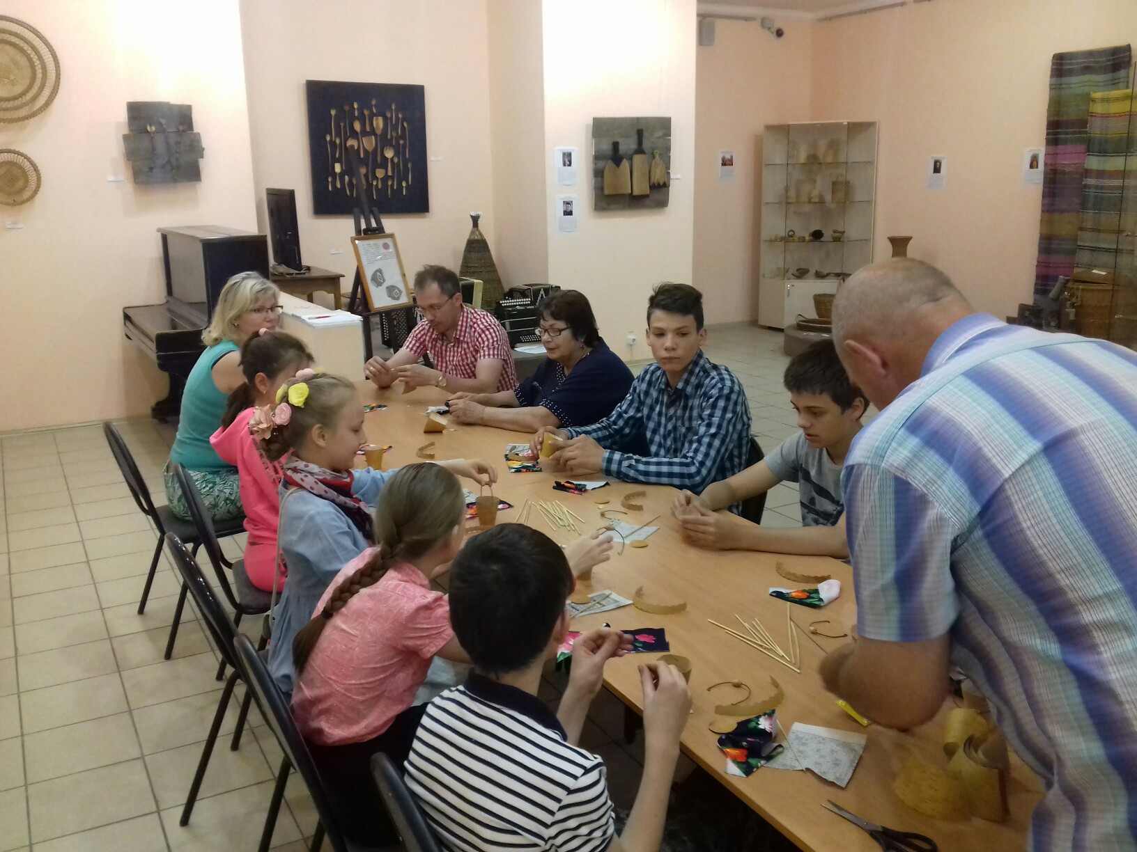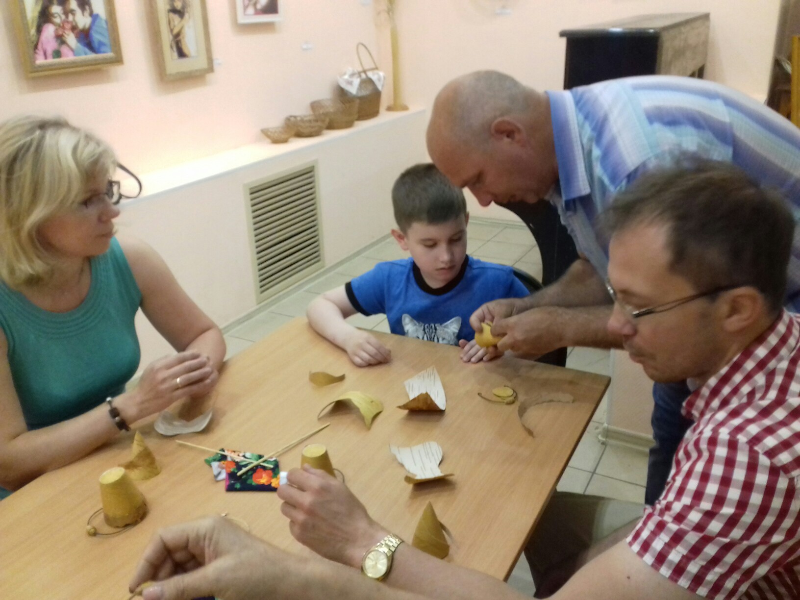 В последнюю неделю работы выставки «Парад мужских ремёсел» в ОКМЦКТ приехал Дмитрий Винокуров – мастер производственного обучения Ильинского Дома ремёсел. Дмитрий Николаевич ведёт занятия в студиях «Берестоплетение» и «Соломка».