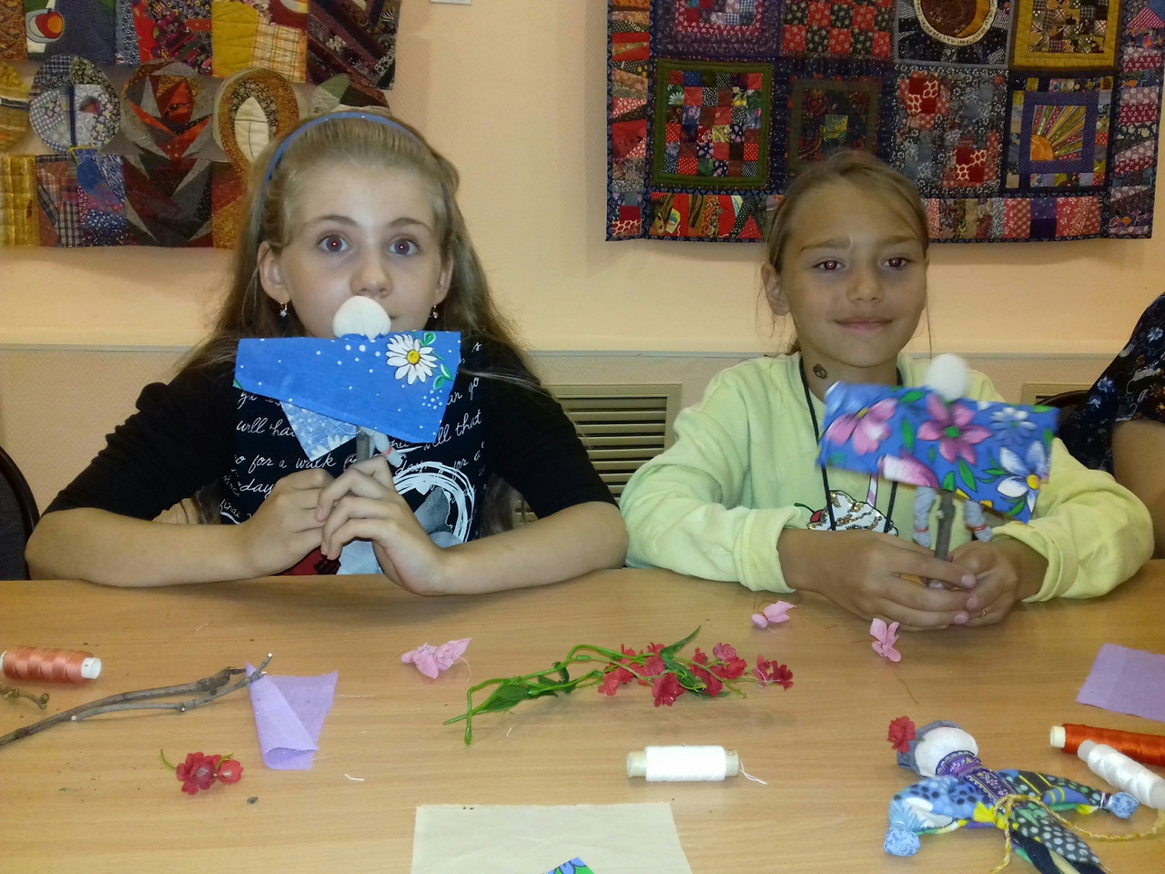 Тема лубочных картинок, лубочного скоморошьего театра, народных ярмарок и гуляний напрямую связана с шуточными кулачными боями и молодецкими забавами. Поэтому на мастер-классе было решено сделать игровую куклу (точнее куклака) Кулачника. Считалось, что драчун куклак, который в игре машет кулачками, помогает мальчикам трансформировать негативную энергию в позитивную, снять напряжение и обиды. Ребята отлично справились с работой.