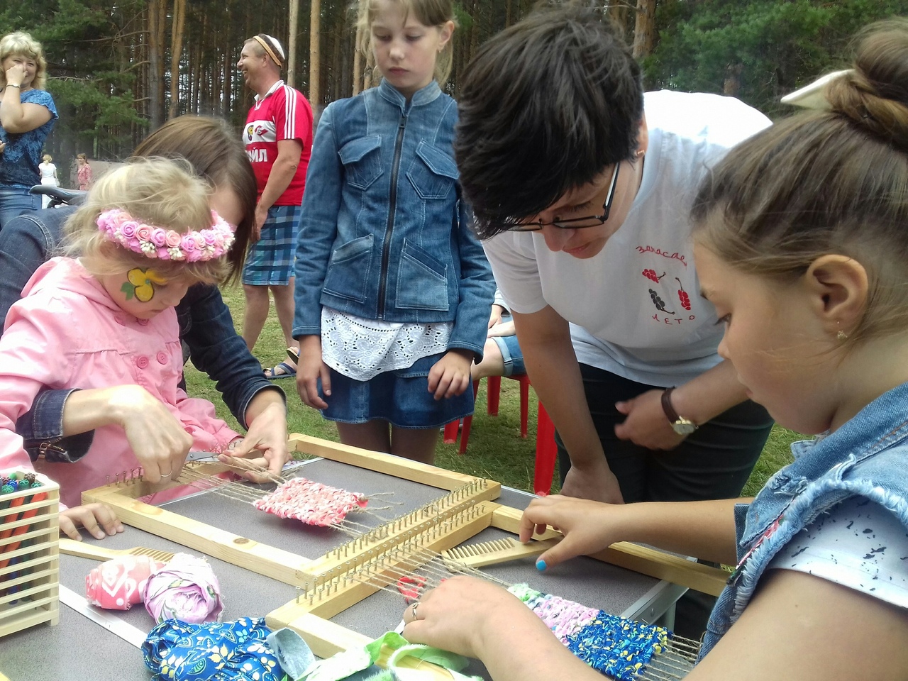 Увлекательные мастер-классы по ткачеству на рамке и лоскутной аппликации провели для гостей фестиваля мамы и ребята из общественной организации молодых инвалидов и их родителей "Грани". Большим спросом пользовались изделия ребят из "Граней" - кухонные лопатки с пирографией, тканые браслеты и магнитики, вязаные коврики, экосумки и мешочки с печатью на ткани.