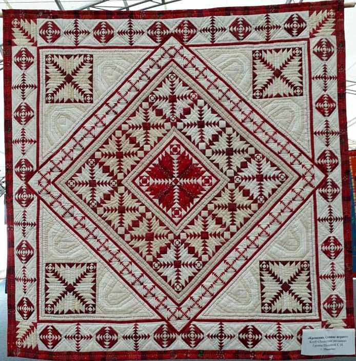 Слова руководителя клуба Тулуповой Марины Юрьевны об этой работе :" Это панно собрало в себе все : любовь к лоскутному традиционному шитью,посвящение торжественной дате-наш клубный 25-летний юбилей, тема конкурса и память..., память о тех, кто был с нами, но не сможет присутствовать на нашем юбилее...