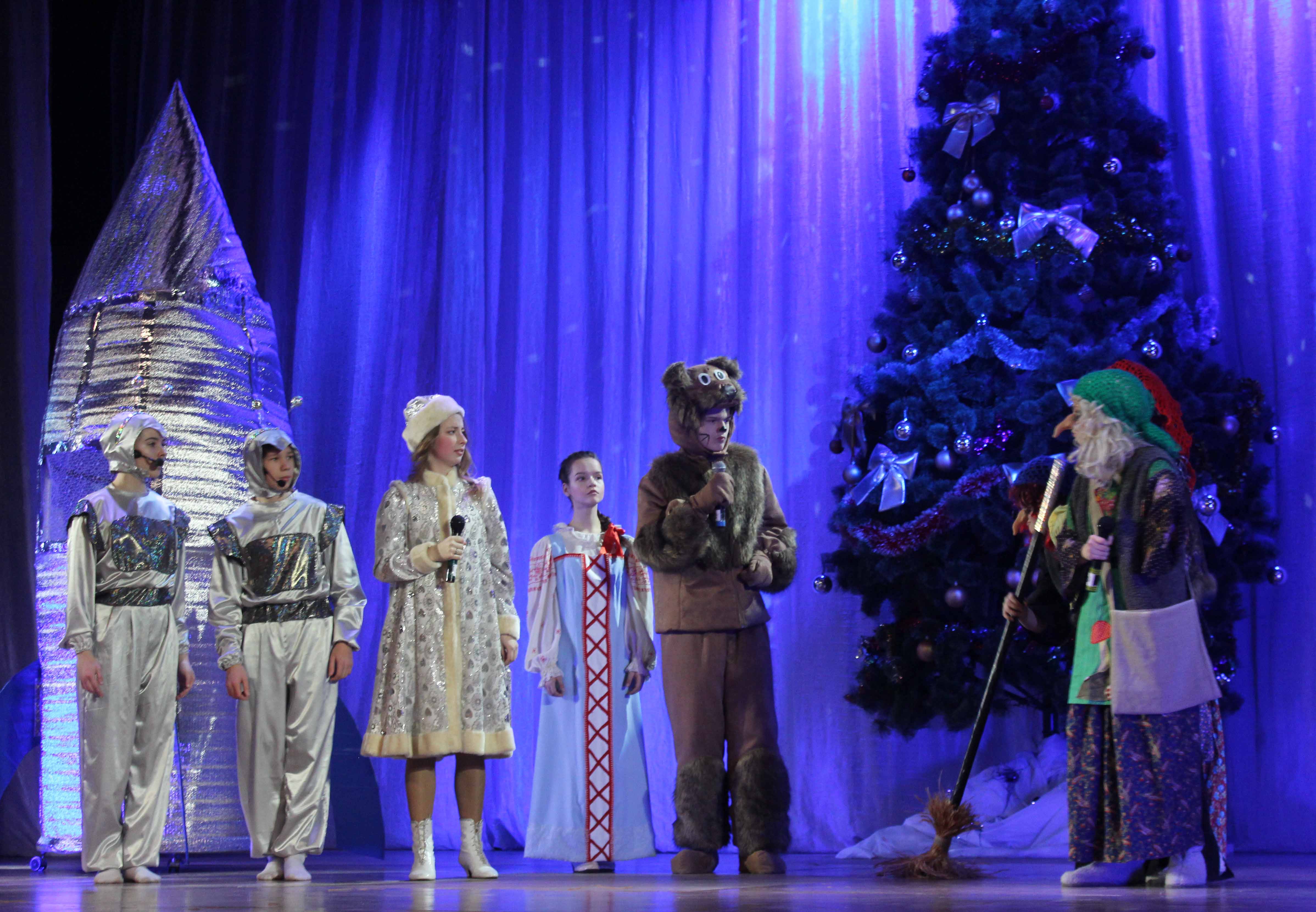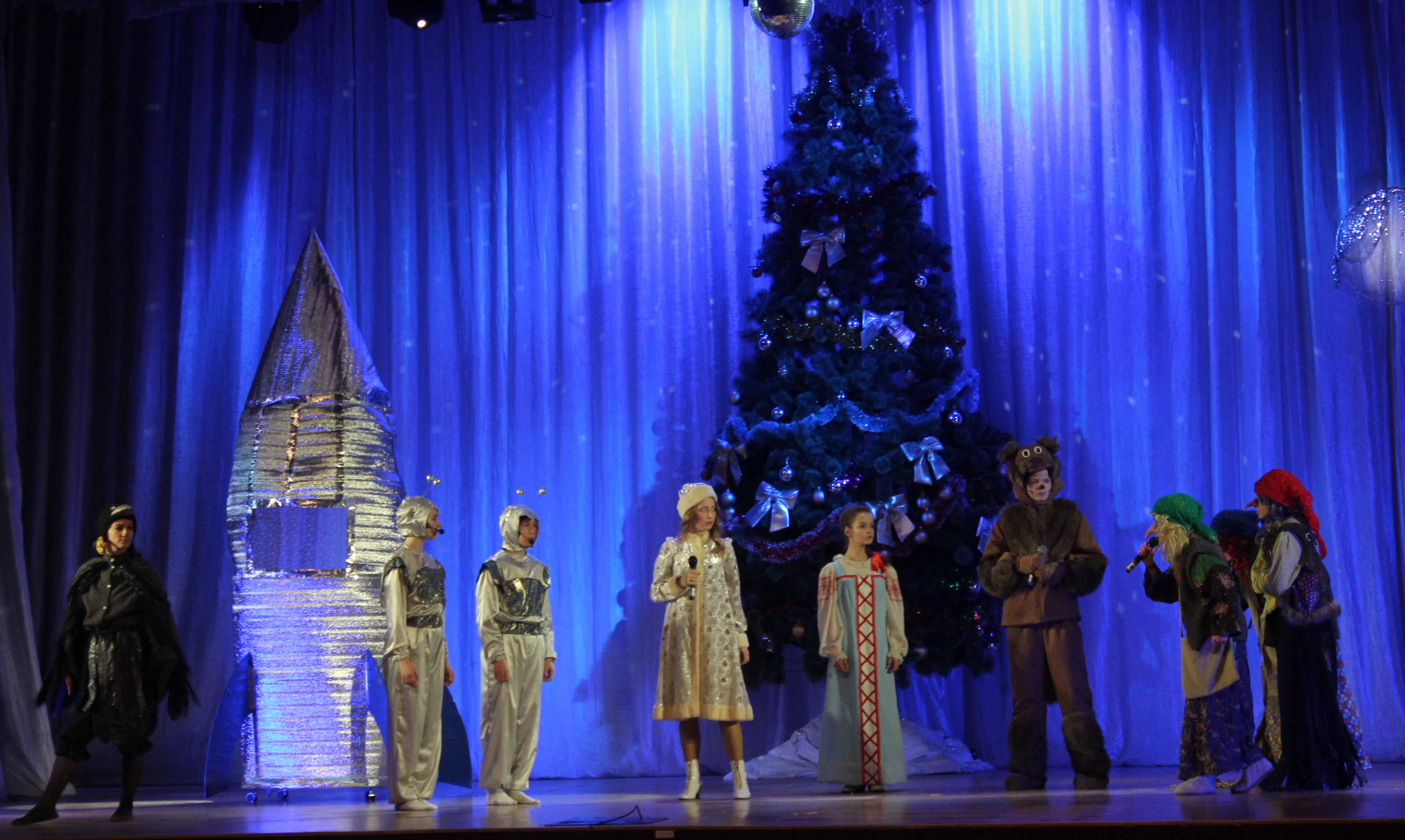 Чудес на яркой, праздничной сцене в эти дни было действительно немало.Откуда не возьмись в сказочный лес прилетела большая ракета с самого Марса, а в ней оказались очень умные и развитые инопланетяне в поисках земных волшебников для встречи Нового года на Марсе.