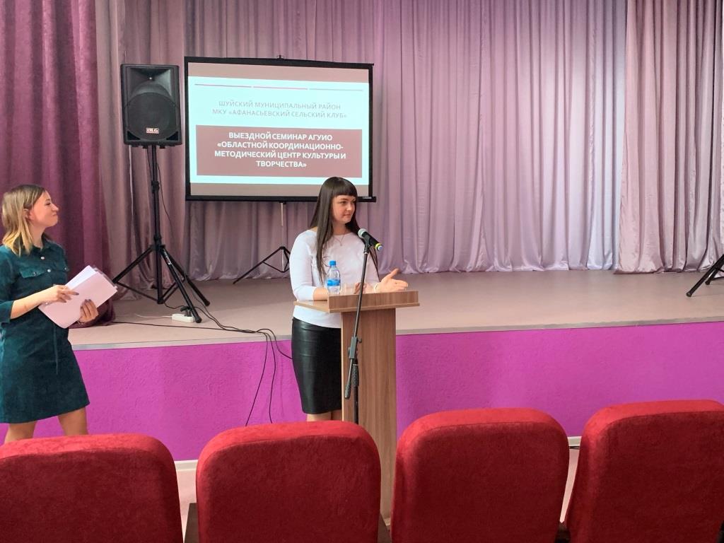18 марта сотрудниками областного координационно-методического центра культуры и творчества во главе с директором Дворниковой Евгенией Сергеевной был организован методический выезд в Шуйский муниципальный район. Целью поездки было ознакомление с работой культурно-досуговых учреждений – участников реализации национального проекта «Культура», расположенных на территории района, а также проведение обучающего семинара с директорами и художественными руководителями КДЦ Шуйского муниципального района.