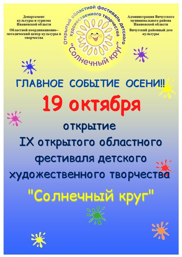 19 октября в Вичугском районном Доме культуры (п. Чертовищи) начинает работу IX открытый областной фестиваль детского художественного творчества «Солнечный круг».