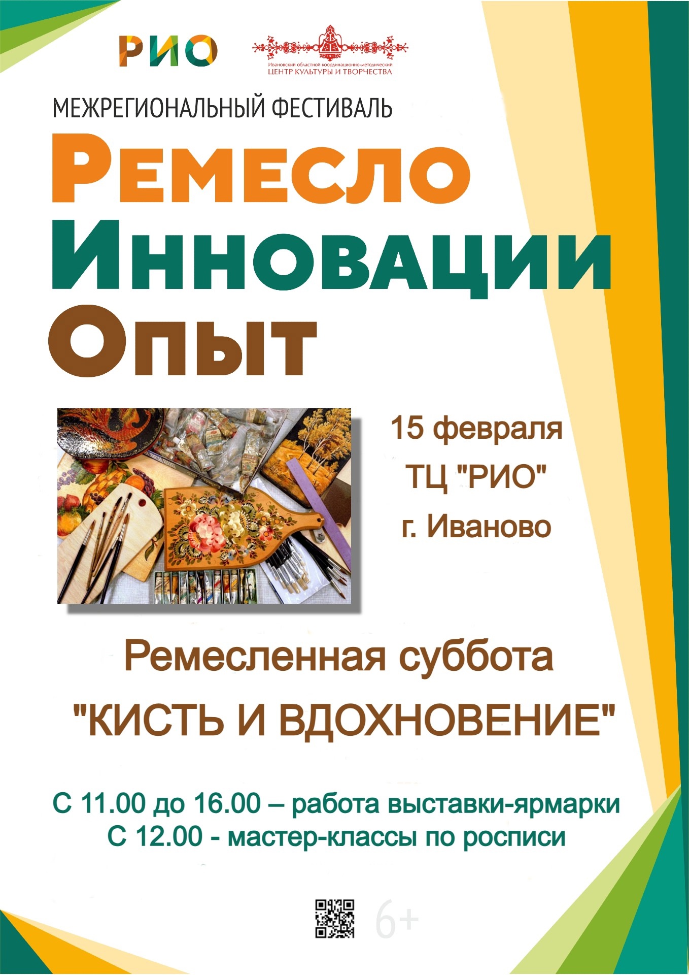 15 февраля в торговым центре «РИО» состоится ремесленная суббота «Кисть и вдохновение» в рамках межрегионального фестиваля «Ремесло. Инновации. Опыт».