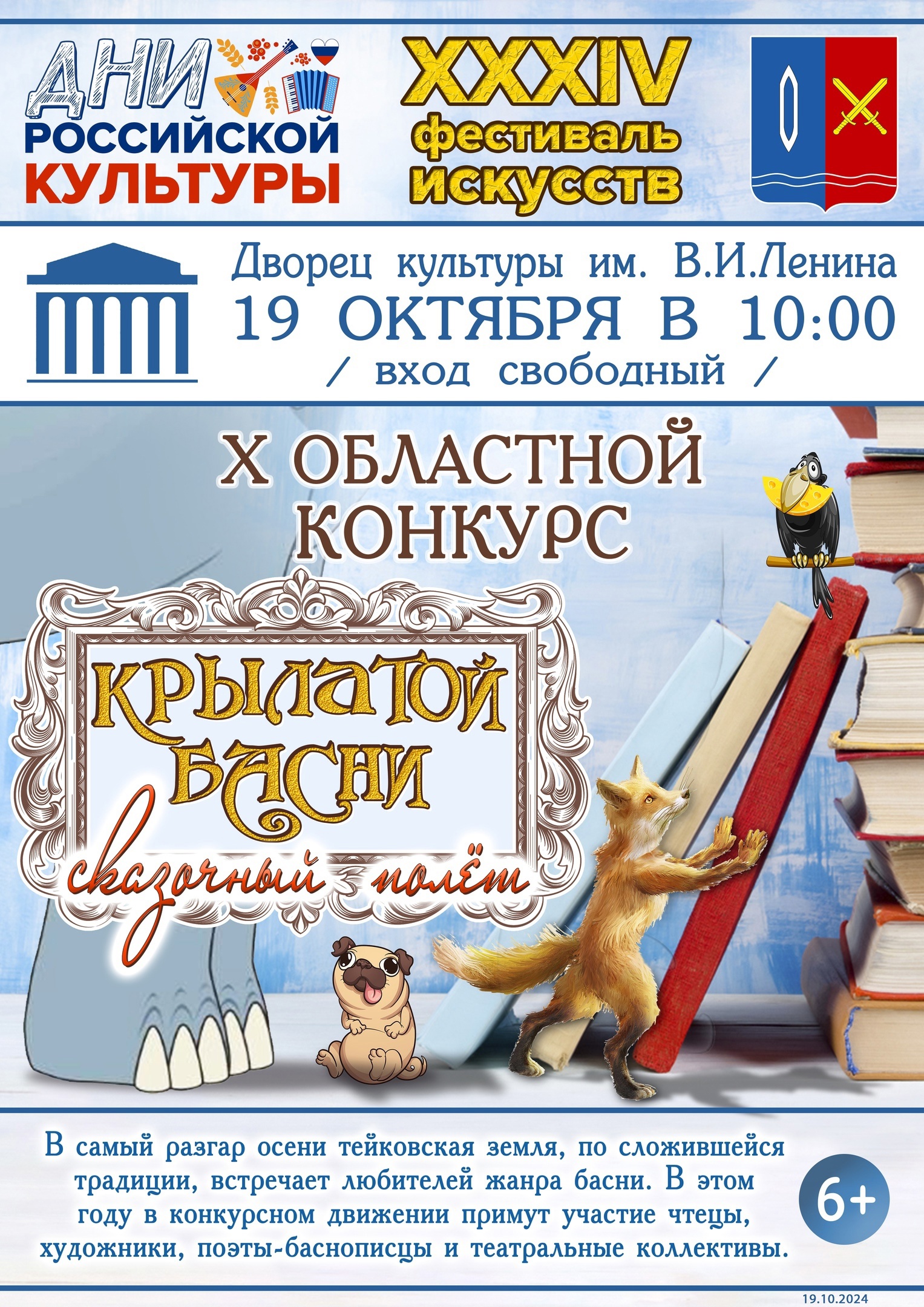 Приглашаем принять участие в X областном конкурсе чтецов, поэтов-баснописцев, художников и театральных коллективов «Крылатой басни сказочный полёт»!