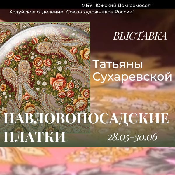 28 мая в Южском Доме ремёсел состоялось открытие выставки члена Союза художников России Татьяны Сухаревской «Павловопосадские платки».