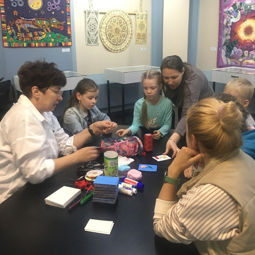 18 мая в Международный день музеев руководитель народного коллектива «Лоскутная мозаика» Марина Тулупова провела мастер-класс по созданию открытки для юных посетителей Ночи музеев в Шуйском историко-художественном и мемориальном музее имени М.В. Фрунзе, где сейчас проходит выставка коллективных работ клуба. Ребята научились мастерить миниатюрные гвоздики и незабудки из ткани и декорировать ими открытку.