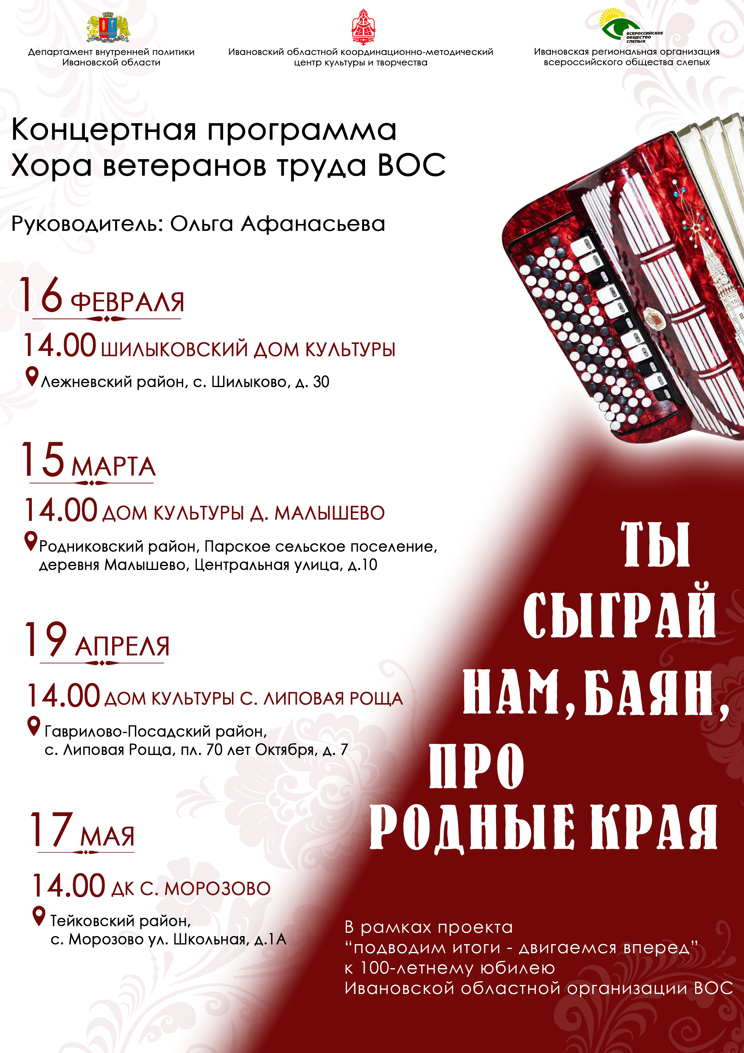 В обновленных Домах культуры Лежневского, Родниковского, Гаврилово-Посадского и Тейковского районов Ивановской области с февраля по май можно будет посетить новые концертные программы.