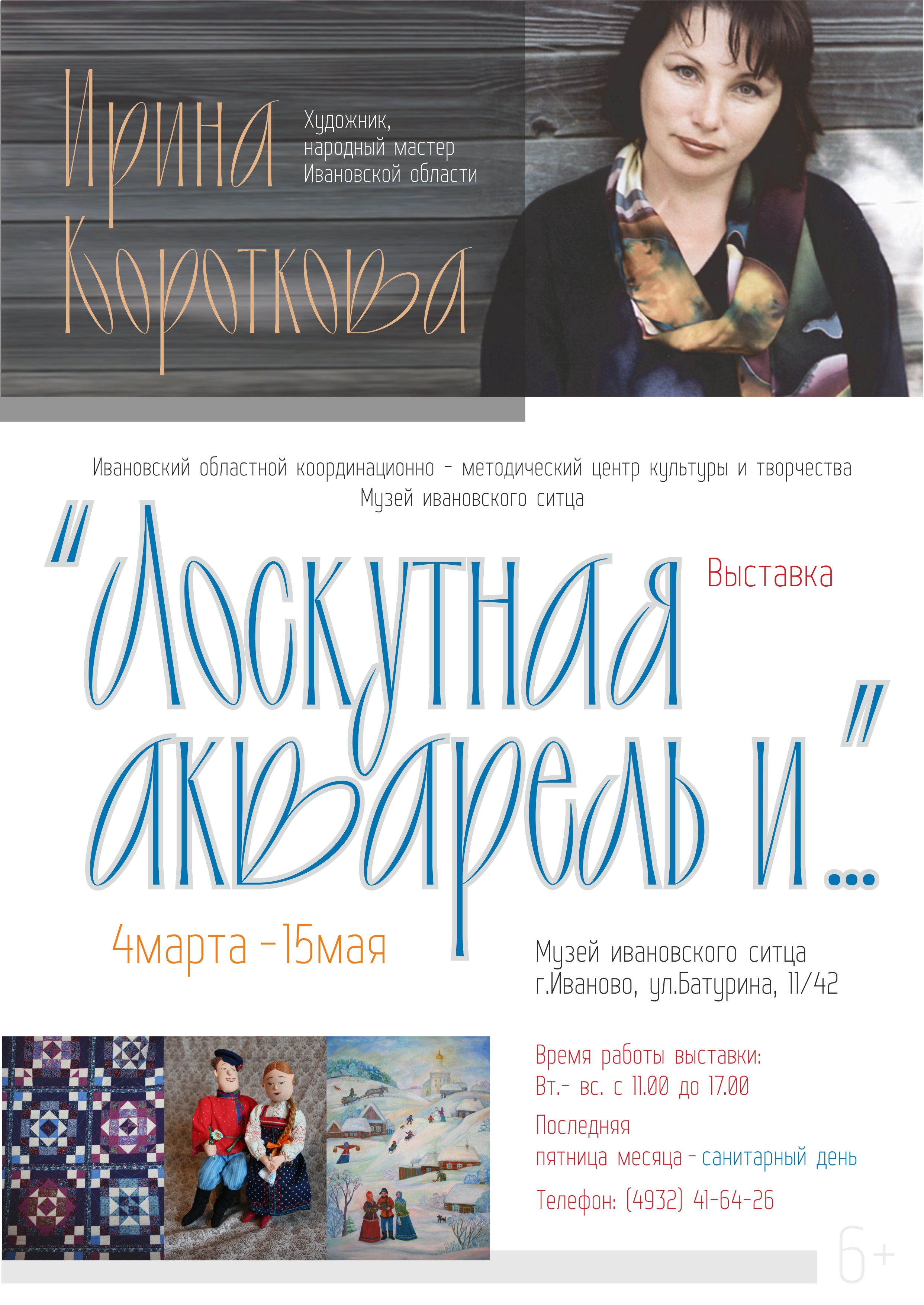 4 марта в ресурсном центре Музея ивановского ситца при содействии Областного центра культуры и творчества открылась юбилейная выставка народного художника Ивановской области Ирины Коротковой "Лоскутная акварель и..."