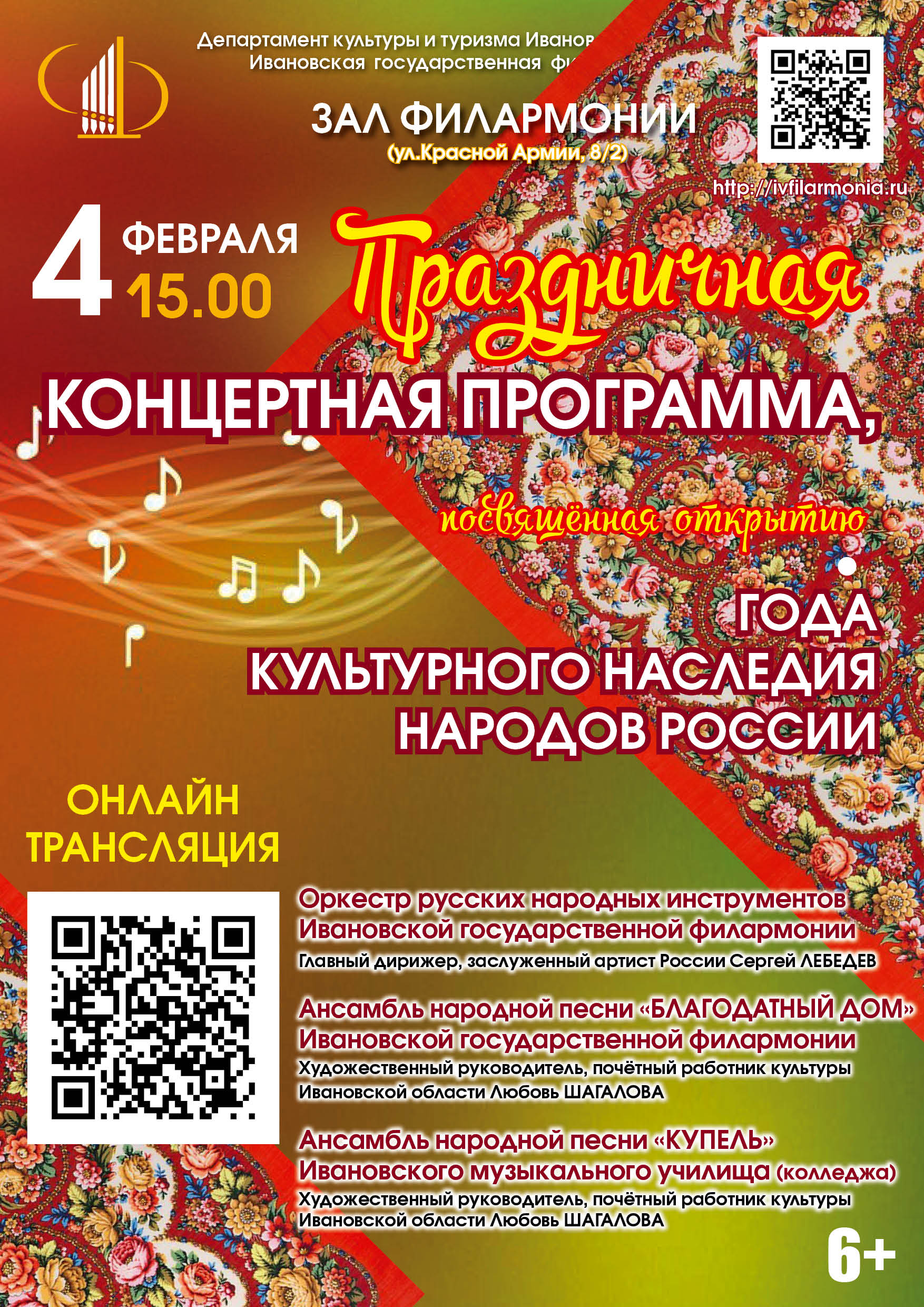 В течение года в Ивановской области пройдёт более 300 мероприятий как очно, так и в онлайн-формате в рамках объявленного Президентом России Года культурного наследия народов страны.