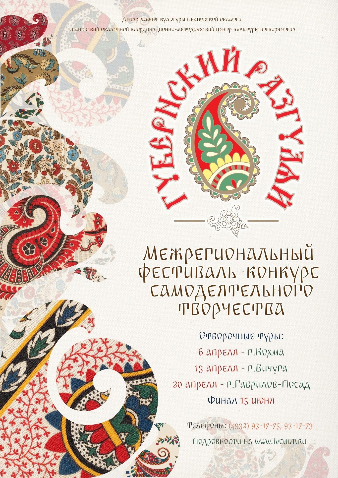 Областной координационно-методический центр культуры и творчества вновь дает старт межрегиональному фестивалю-конкурсу самодеятельного народного творчества «Губернский разгуляй». Учредитель фестиваля - Департамент культуры Ивановской области.