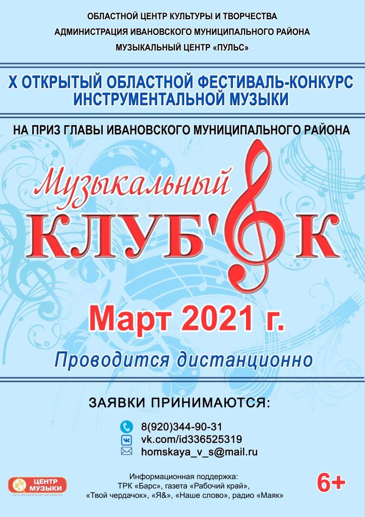 X открытый областной фестиваль-конкурс инструментальной музыки «Музыкальный КЛУБ’ОК» на приз Главы Ивановского муниципального района