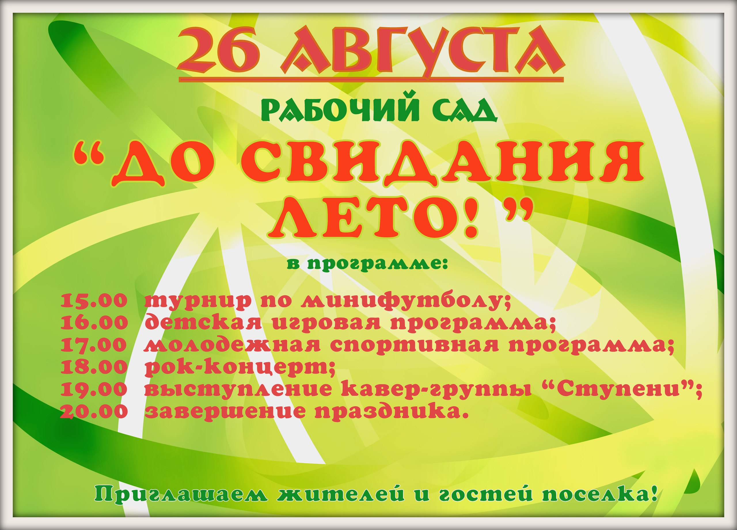 26 августа в Лежневе пройдет праздник "До свидания лето!".