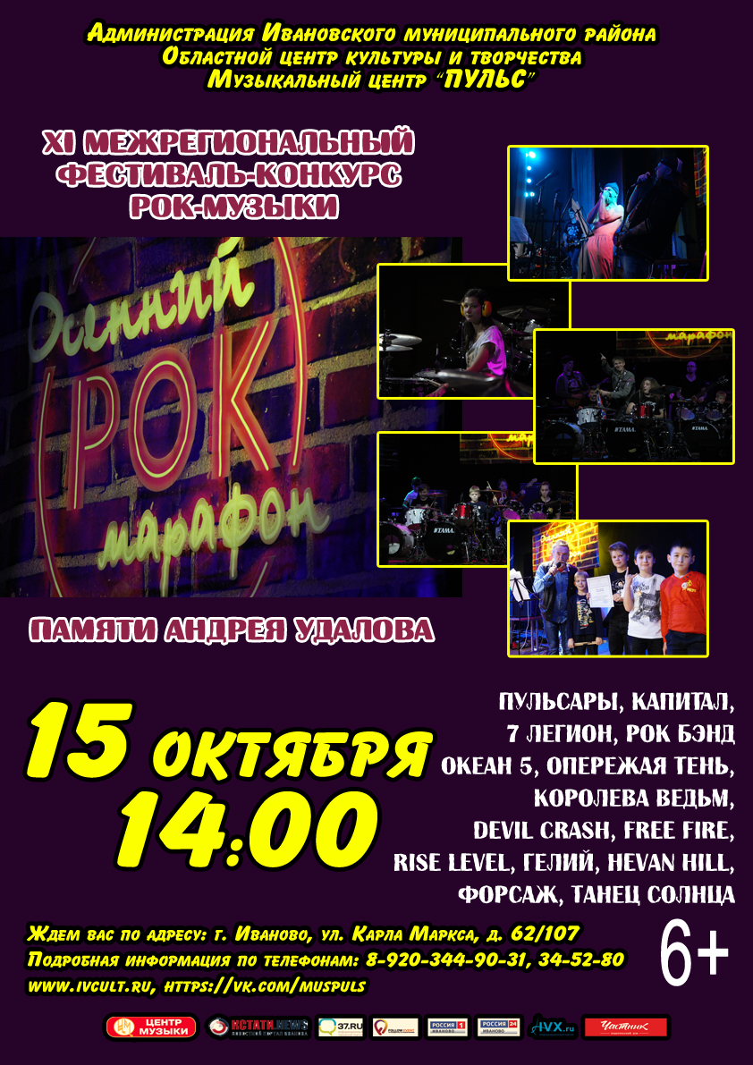 15 октября в областном центре культуры и творчества пройдет традиционный «Осенний рок-марафон», посвященный памяти известного музыканта, журналиста, бывшего корреспондента «Рабочего края» Андрея Удалова, а также других безвременно ушедших музыкантов.
