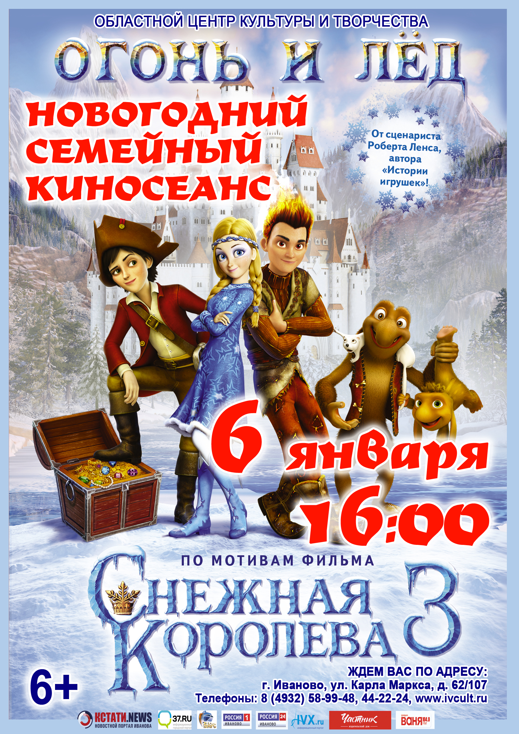 Приглашаем на новогодний семейный кинопоказ полнометражного мультипликационного фильма "СНЕЖНАЯ КОРОЛЕВА 3: ОГОНЬ И ЛЕД".