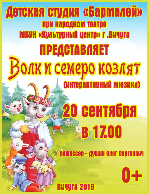 Спектакль фестивальной программы: детский интеракивный мюзикл "Волк и семеро козлят", реж. О. Душин