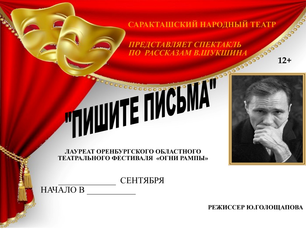 Спектакль фестивальной программы: по мотивам рассказов В.М. Шукшина "Пишите письма", реж. Ю. Голощапова