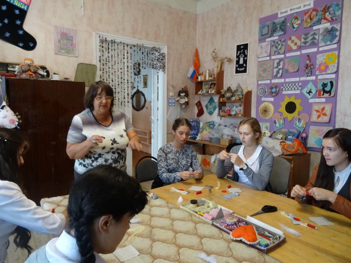 Есть любительское объединение для женщин «Играем в лоскутки» (лоскутная техника) и проект «Маленькие мастера» в рамках уроков технологии для учащихся 4 класса.