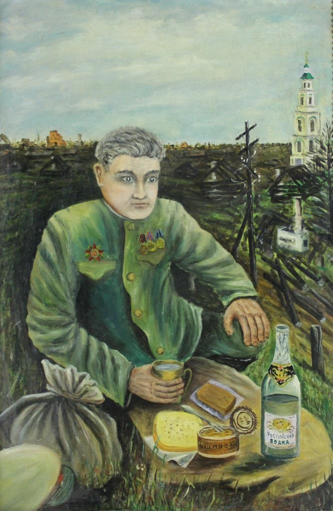 Фото 3. Уруев И.Г. «Солдат. (Враги сожгли родную хату)» (1985). Картон, масло. 107х78