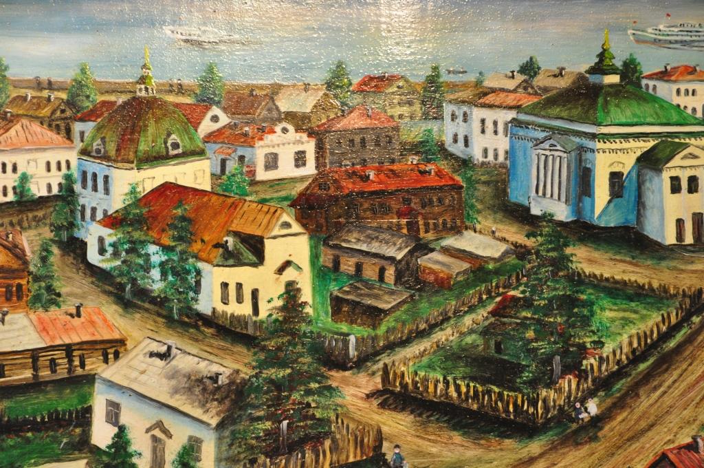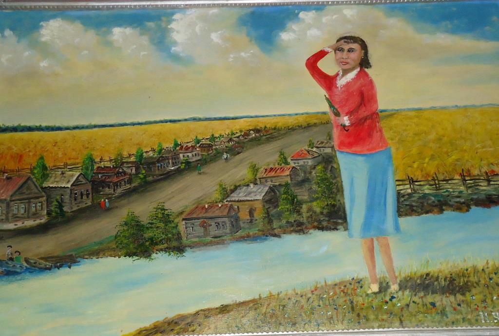 Фото 5. Уруев И.Г. «Деревенька моя» (2002). Оргалит, масло. 130х90