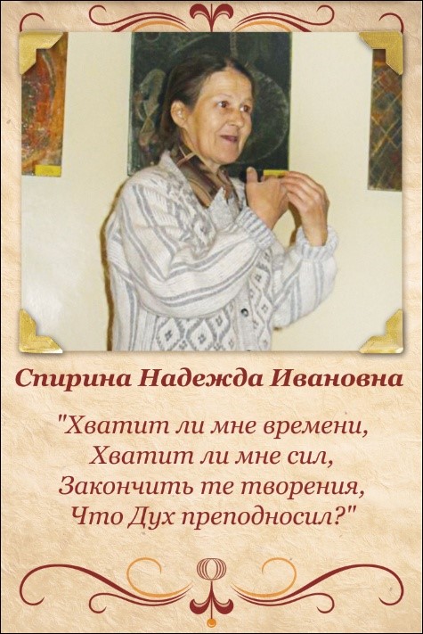 Отделом методики народного творчества ОКМЦКТ планово проводится изыскательная работа по изучению биографии и творчества Надежды Ивановны Спириной.