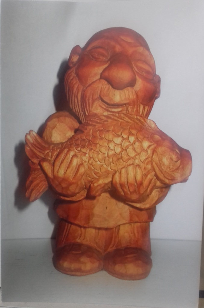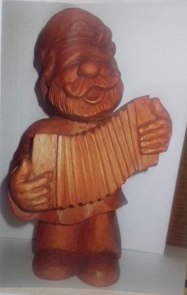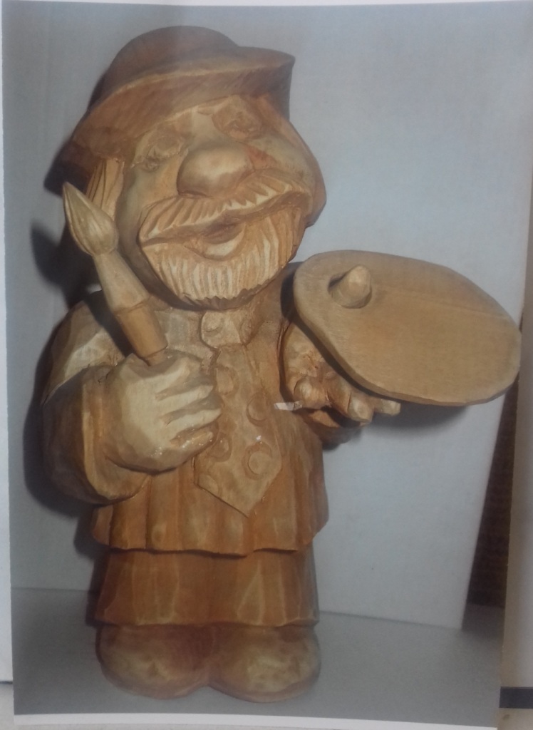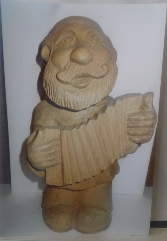 Михаил Павлович может выполнить из дерева любое изделие – шкатулку, кухонную утварь, посуду, как вручную, так и на токарном станке, - но как автор нашёл себя в производстве деревянных фигурок: забавных, характерных, гротескных, карикатурных, неизменно вызывающих улыбку. Фигурки мастер вырезает из двух частей дерева, затем склеивает, сушит и тонирует морилкой. Весь инструмент для работы мастер также изготовил сам.