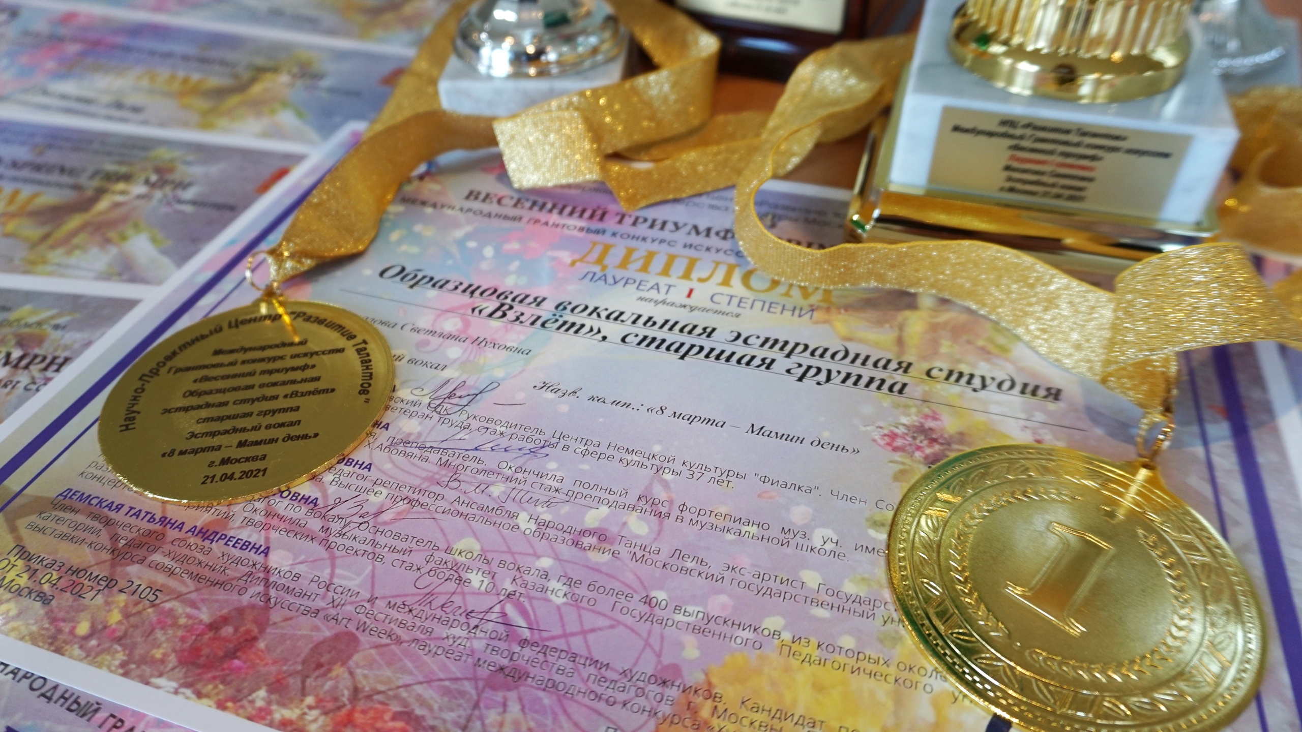 Награды коллектива: 2021 г. - младшая группа - Международный онлайн конкурс искусств «HOLYWOOD STARS» г.Лос-Анджелес: Лауреат 1 степени; младшая группа - Международный онлайн конкурс искусств «Супер звезды» г.Владивосток - Лауреат 2 степени; младшая группа - Международный онлайн конкурс искусств «Я-талант» г.Краснодар - Лауреат 3 степени; Международный грантовый онлайн конкурс искусств «Весенний триумф» г.Москва: Лауреат 1 степени; старшая группа - Международный военно-патриотический онлайн конкурс искусств «Победный май» г.Москва: Лауреат 1 степени.