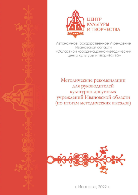 Областной координационно-методический центр культуры и творчества Ивановской области в помощь руководителям клубных формирований, руководителям и специалистам учреждений культурно-досугового типа подготовил методические рекомендации по теме: «Организация работы клубных формирований». Материалы сборника призваны помочь работникам сферы культуры в повышении эффективности их практической деятельности.