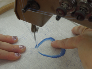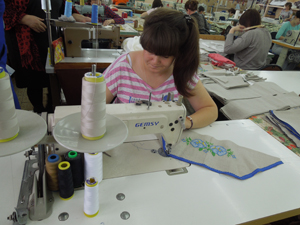 В момент нашего визита на ООО «Ришелье» здесь вышивали скатерти с рисунком под Гжель.