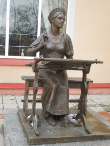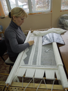 Практикуется в Пучеже и вышивка гладью. Порядок работы нам показывали уже на ООО «Ришелье», где экскурсию для нас проводила главный художник предприятия Галина Николаевна Голованова.