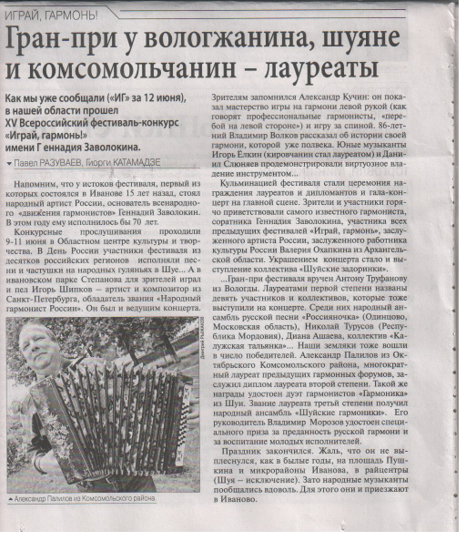"Ивановская газета", №47, 15 июня 2018 г.
